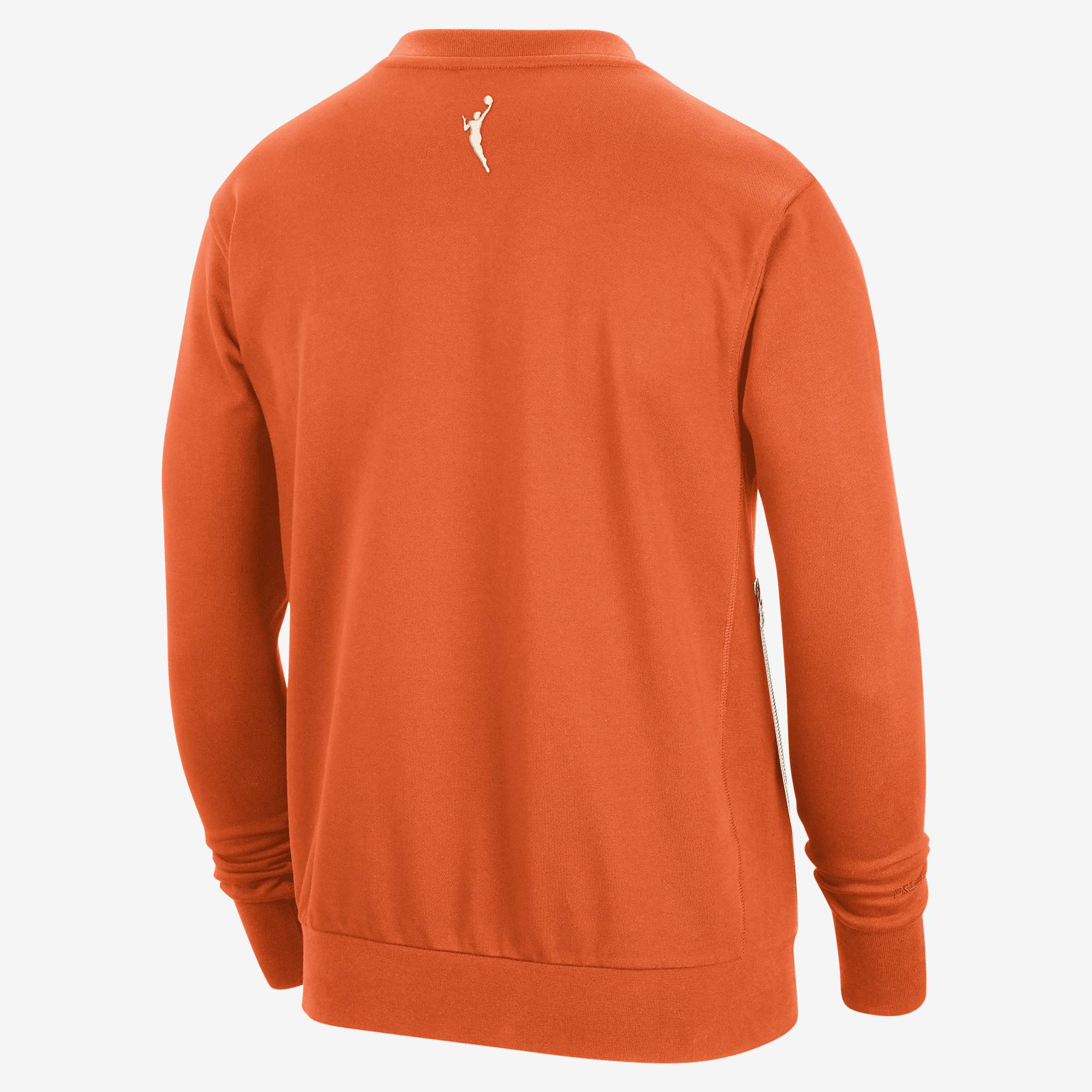 Hold on to warmth but let go of sweat in this WNBA Sweatshirt, made with soft French terry fabric that wicks moisture away from your skin. Benefits:Nike Dri-FIT technology moves sweat away from your skin for quicker evaporation, helping you stay dry and comfortable. French terry fabric with a bit of stretch helps keep you warm and moving freely. Product Details:Body: 62% cotton/38% polyester. Rib: 97% cotton/3% spandex. Machine wash. Imported. Style: FN0629; Color: Brilliant Orange/Pale Ivory/Alabaster; Size: XL; Gender: Male; Age Group: Adult | WNBA Standard Issue Nike Dri-FIT Basketball Crew-Neck Sweatshirt in Orange, Size: XL | FN0629-820