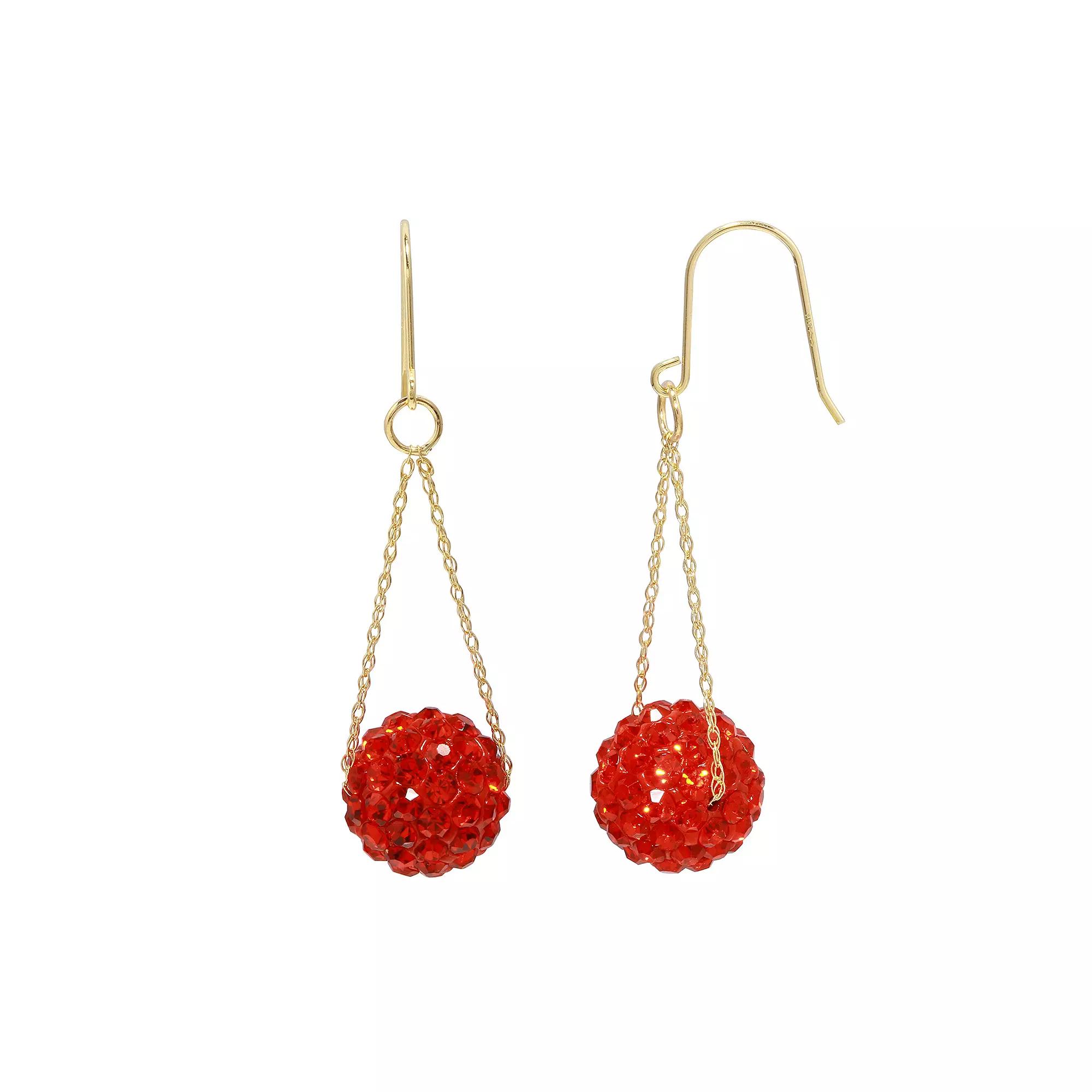 Get adorable style with these 14k gold earrings. Length: 1.5 in. Backings: fishhook Base material: 14k gold Plating: 14k gold Finish: polished Packaging: boxed Additional details: nickel free STONE DETAILS Type: crystal Center stone size: 10 mm x 10 mm Color: white Shape: round Gemstones may have been treated to enhance their appearance. Special care may be required. Please visit our Gemstone Treatment & Special Care Guide for more information. Gender: female. Age Group: adult.