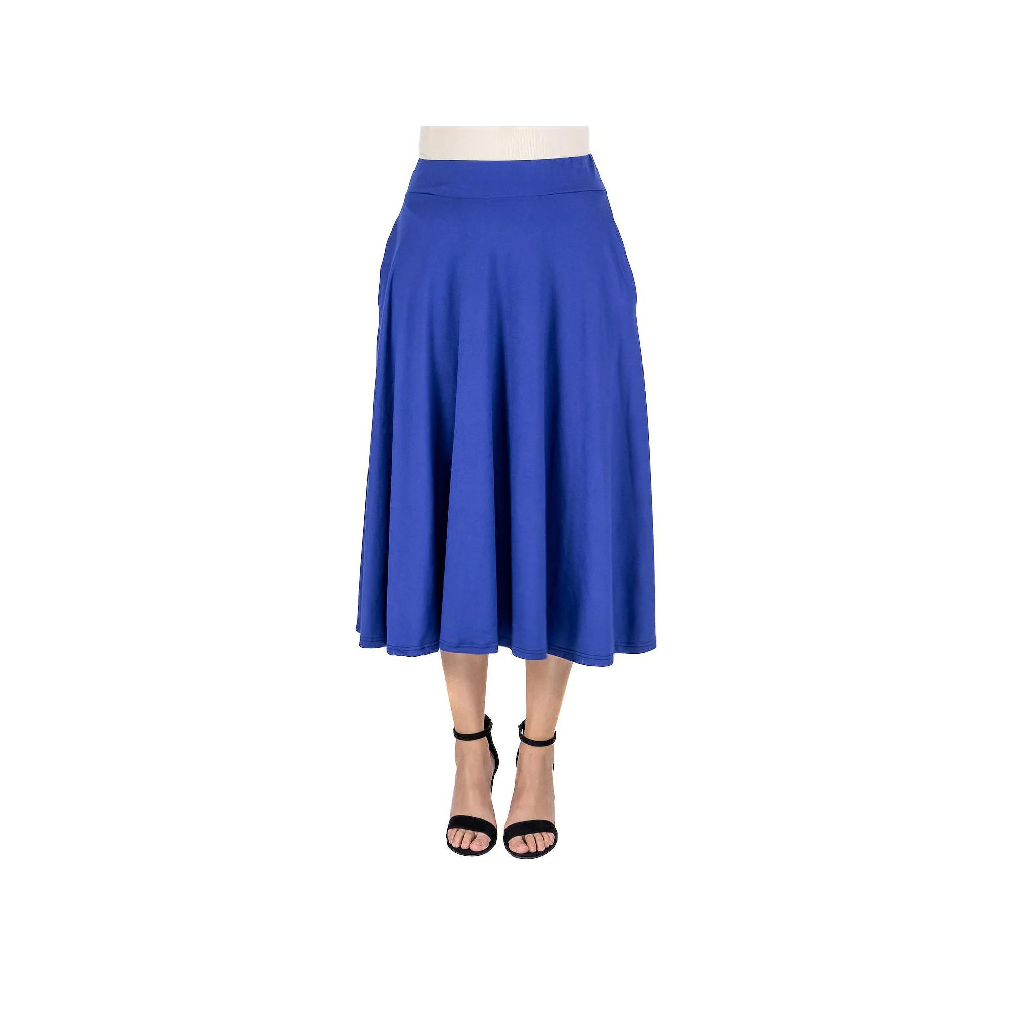 Flowy and flirty, this womens solid pleated midi skirt from 24Seven Comfort Apparel is the perfect addition to any wardrobe! Flowy and flirty, this womens solid pleated midi skirt from 24Seven Comfort Apparel is the perfect addition to any wardrobe! Pull-on design Jersey construction Pleated hem 2 pockets UnlinedFIT & SIZING 30 1/4-in. length High-rise elastic waistband Maxi lengthFABRIC & CARE Polyester, spandex Machine wash Imported Size: Small. Color: Navy. Gender: female. Age Group: adult.