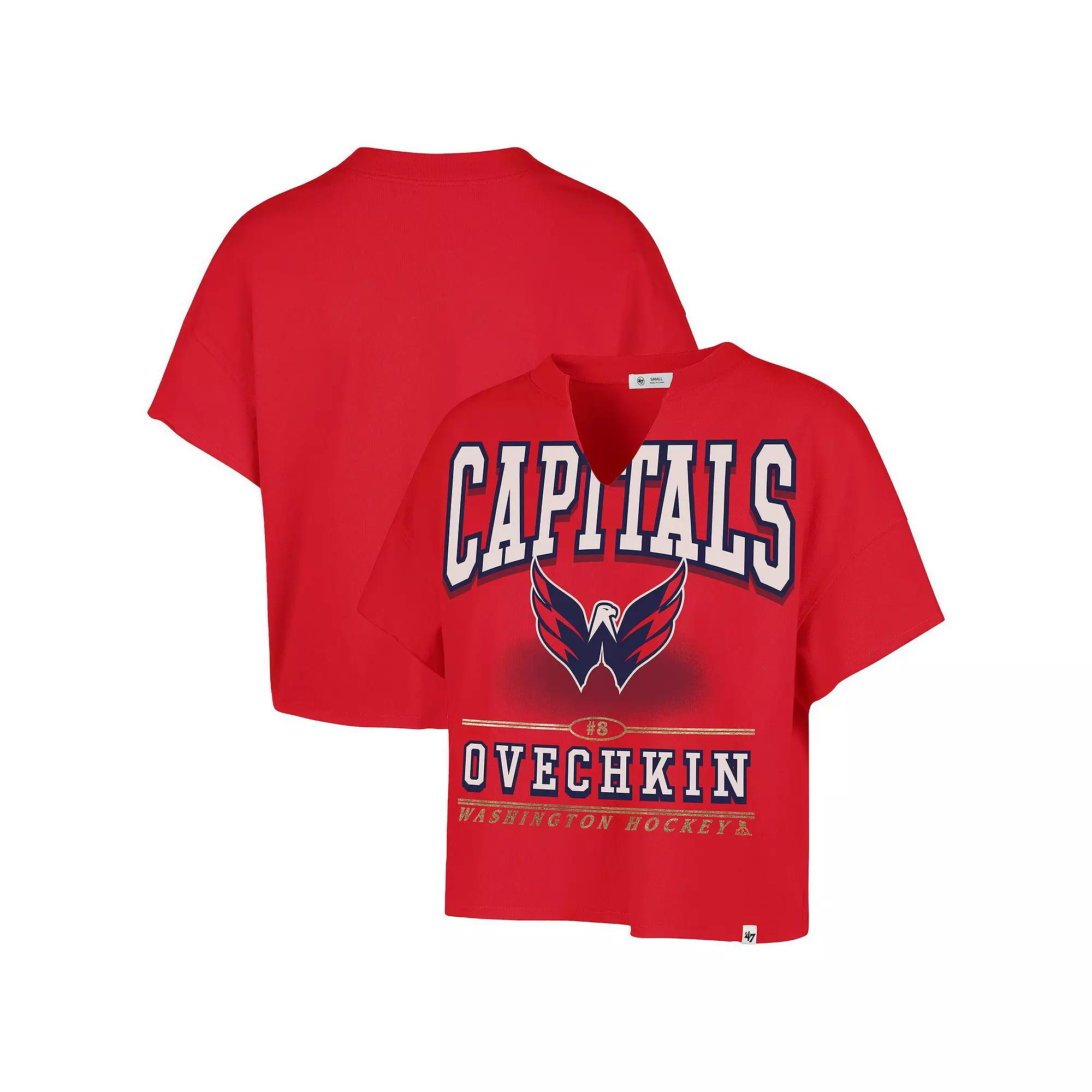 Show your unmeasurable excitement for Alexander Ovechkin and the Washington Capitals with this Oversized Notch Neck T-Shirt from '47. This vibrant tee proudly displays the player's name and number in jumbo, screen-printed graphics with eye-catching foil accents. The slightly oversized, cropped fit adds a fashionable touch, perfect for showcasing your Washington Capitals pride whether at the stadium or the watch party. Machine wash, tumble dry low. Imported. Notch neck. Jumbo, screen-printed graphics with foil accents on the front. Officially licensed. Slightly oversized cropped T-shirt. Short sleeve. Material: 100% Cotton Jersey. Brand: '47. Color: Red. Gender: female. Age Group: adult.
