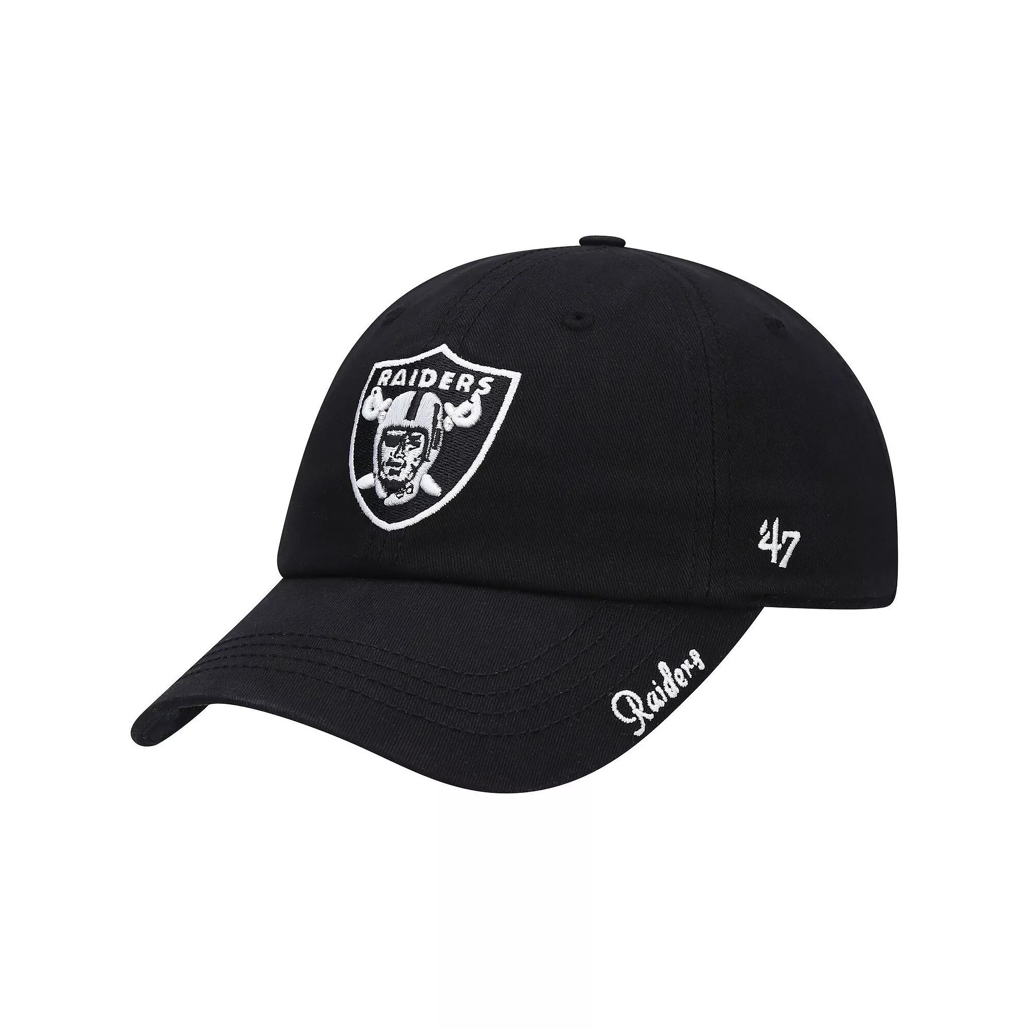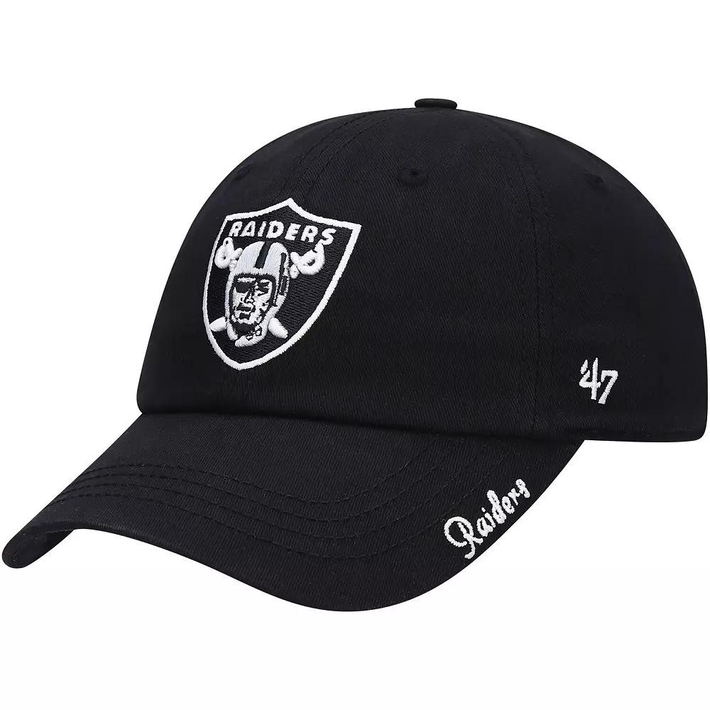 Indulge your sporty side by throwing on this Las Vegas Raiders Miata Clean Up Primary adjustable hat from 47 and spicing up any casual ensemble. The bold Las Vegas Raiders graphics add flair to the design, and the adjustable fabric strap at the back ensures a perfect fit for every big game.Indulge your sporty side by throwing on this Las Vegas Raiders Miata Clean Up Primary adjustable hat from 47 and spicing up any casual ensemble. The bold Las Vegas Raiders graphics add flair to the design, and the adjustable fabric strap at the back ensures a perfect fit for every big game.Curved billUnstructured relaxed fitAdjustable fabric strap with snap buckleOfficially licensedSix panels with eyeletsImportedSurface washableEmbroidered graphics with raised detailsBrand: 47Low CrownOne size fits mostMaterial: 100% Cotton Color: Black. Gender: female. Age Group: adult.