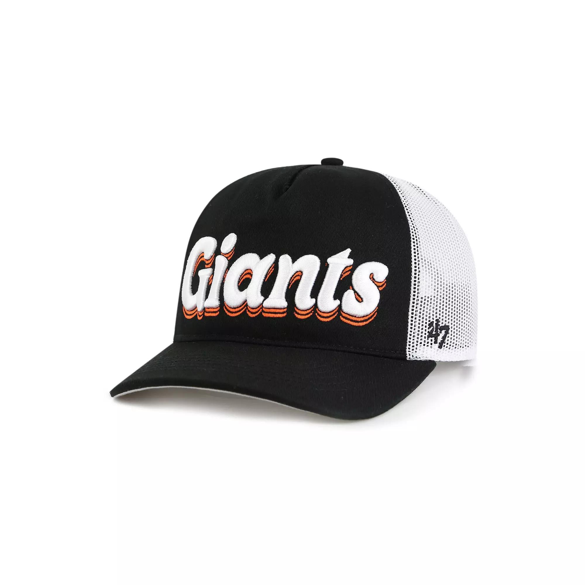 Complete your San Francisco Giants game day look with this '47 Biloxi Hitch Adjustable Hat. The '47 Hitch boasts a retro-inspired silhouette with a pinched five-panel crown, offering a stylish and comfortable fit. The solid front panel provides a clean canvas for the embroidered San Francisco Giants graphics, while the mesh mid and rear panels offer enhanced breathability.Complete your San Francisco Giants game day look with this '47 Biloxi Hitch Adjustable Hat. The '47 Hitch boasts a retro-inspired silhouette with a pinched five-panel crown, offering a stylish and comfortable fit. The solid front panel provides a clean canvas for the embroidered San Francisco Giants graphics, while the mesh mid and rear panels offer enhanced breathability.PRODUCT FEATURESSnap ClosureMid CrownOfficially licensedUnstructured relaxed fitCurved billEmbroidered graphics with raised detailsWoven tag on backWipe clean with a damp clothMaterial: 100% Cotton - Front Panels and Visor; 100% Polyester - Mid and Rear PanelsSolid front panelImportedMesh mid and rear panels for extra breathabilityBrand: '47The '47 Hitch is a retro-inspired silhouette constructed with a pinched five-panel crown constructed from garment-washed cotton for a worn-in feel Size: One Size. Color: Black. Gender: female. Age Group: adult.