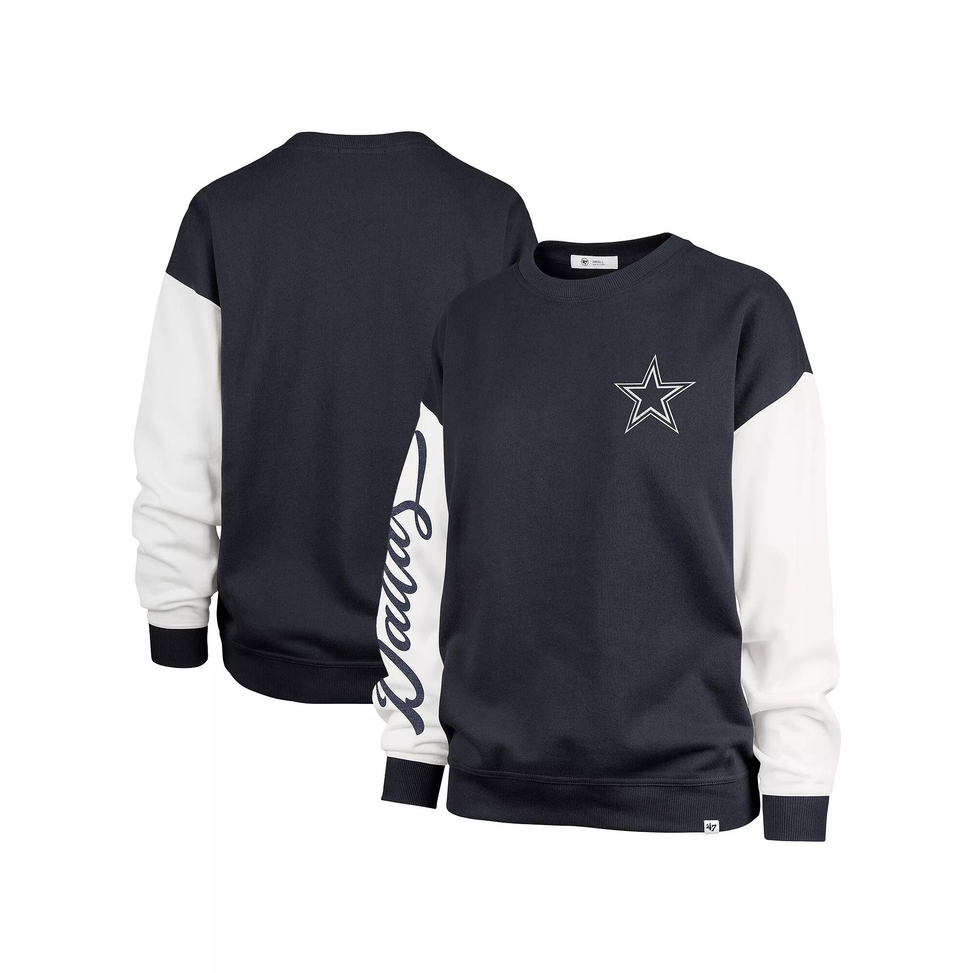 Stay cozy and show your Dallas Cowboys pride with this '47 Double Header Rise Andie Pullover Sweatshirt. This officially licensed sweatshirt features a vibrant color block design and eye-catching team graphics for a spirited game-day look. Made from a blend of soft cotton and durable polyester, it offers a cozy feel that's perfect for cheering on the Cowboys all season long.Stay cozy and show your Dallas Cowboys pride with this '47 Double Header Rise Andie Pullover Sweatshirt. This officially licensed sweatshirt features a vibrant color block design and eye-catching team graphics for a spirited game-day look. Made from a blend of soft cotton and durable polyester, it offers a cozy feel that's perfect for cheering on the Cowboys all season long.PRODUCT FEATURESMaterial: 60% Cotton/40% PolyesterPulloverLong sleeveMachine wash, tumble dry lowOfficially licensedBrand: '47ImportedPrinted team graphics on left chest and right sleeveColor Block SleevesOversized Fit Color: Navy. Gender: female. Age Group: adult.