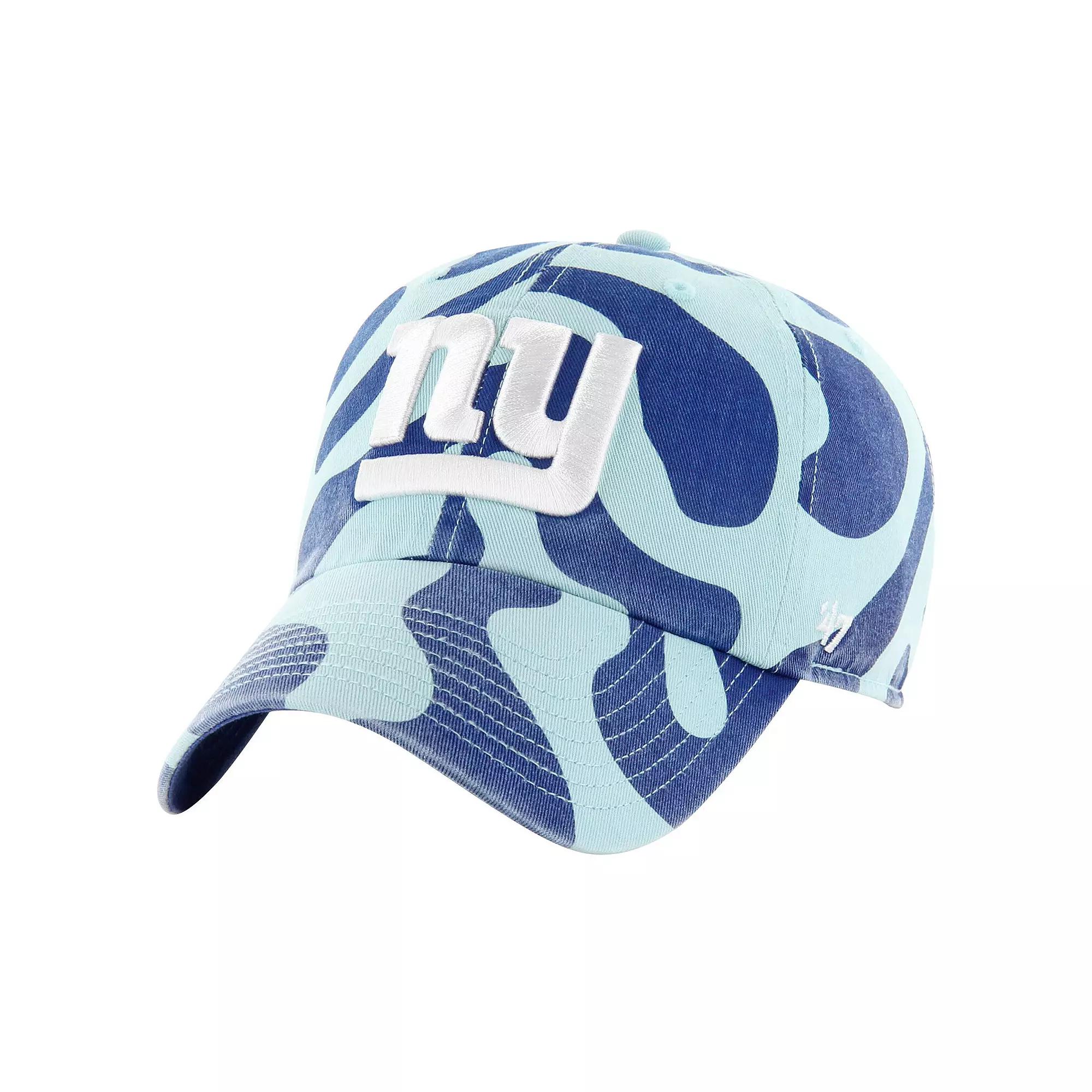 Cheer on your New York Giants with this '47 Freeform Clean Up Adjustable Hat. The all-over abstract pattern adds a touch of modern style, while the classic six-panel design with embroidered eyelets ensures breathability and a timeless look. This New York Giants hat is crafted from 100% cotton for a soft and comfortable feel. Low Crown. Officially licensed. Adjustable fabric strap with snap buckle. Team logo embroidered on front panels. Unstructured relaxed fit. One size fits most. Wipe clean with a damp cloth. Brand: '47. All-over abstract pattern. Material: 100% Cotton. Solid color contrast undervisor. Imported. Six panels with eyelets for ventilation. Curved bill. Color: Blue. Gender: female. Age Group: adult.