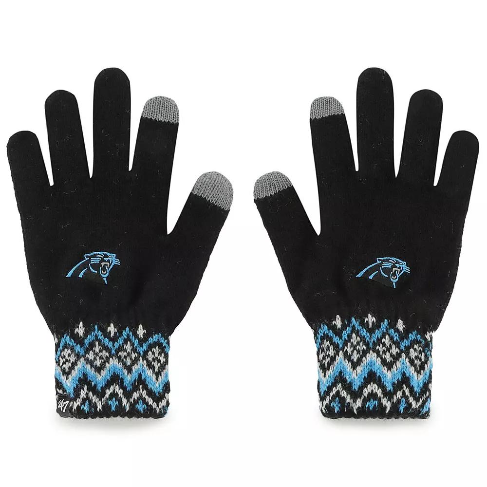 Complete your game day getup with these Carolina Panthers Elsa Gloves from 47. The soft woven design pairs together with eye-catching embroidered graphics for a stylish and comfortable accessory. Plus, the convenient texting material on the finger tips lets you stay connected while showing off your Carolina Panthers spirit.