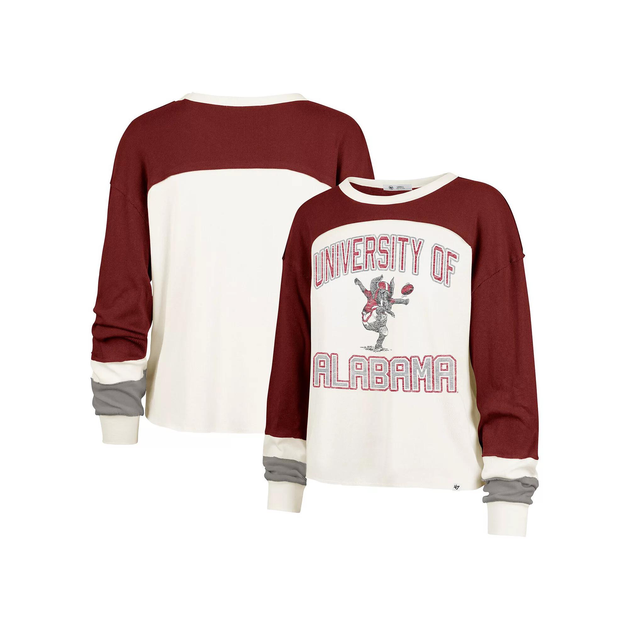 Add some vintage flair to your Alabama Crimson Tide game day look with this 47 Double Header Curve Raglan Long Sleeve T-Shirt. The distressed team graphics printed across the chest offer a vintage look, making it clear youve been a Crimson Tide fan since day one. Plus, the soft, 100% cotton fabric and boat neck design will keep you comfortable whether youre cheering from the stands or relaxing at home.Add some vintage flair to your Alabama Crimson Tide game day look with this 47 Double Header Curve Raglan Long Sleeve T-Shirt. The distressed team graphics printed across the chest offer a vintage look, making it clear youve been a Crimson Tide fan since day one. Plus, the soft, 100% cotton fabric and boat neck design will keep you comfortable whether youre cheering from the stands or relaxing at home.PRODUCT FEATURESOfficially licensedLong sleeveImportedBoat neck for a comfortable fitMachine wash with garment inside out, tumble dry lowBrand: 47Distressed team graphics printed across the chestMaterial: 100% CottonRaglan sleeves for greater freedom of movement in the shoulders and arms Color: Beige. Gender: female. Age Group: adult.