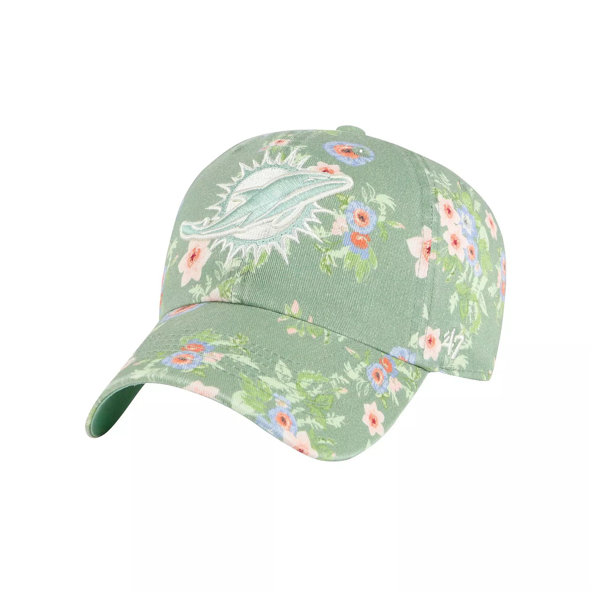 This 47 Meadow Garden Clean Up Adjustable Hat is the perfect way to rep your Miami Dolphins in style. This hat features an eye-catching allover floral print and a relaxed crown and curved visor for a comfortable and stylish fit. The embroidered Miami Dolphins logo pops with an aqua color that matches the contrast undervisor for a perfectly coordinated look.This 47 Meadow Garden Clean Up Adjustable Hat is the perfect way to rep your Miami Dolphins in style. This hat features an eye-catching allover floral print and a relaxed crown and curved visor for a comfortable and stylish fit. The embroidered Miami Dolphins logo pops with an aqua color that matches the contrast undervisor for a perfectly coordinated look.PRODUCT FEATURESOfficially licensedSix panels with eyelets for ventilationWipe clean with a damp clothLow CrownAdjustable fabric strap with snap buckleAqua contrast undervisorMaterial: 100% CottonUnstructured relaxed fitOne size fits mostAllover printed floral patternImportedBrand: 47Embroidered team logo in aquaCurved bill Size: One Size. Color: Green. Gender: female. Age Group: adult.
