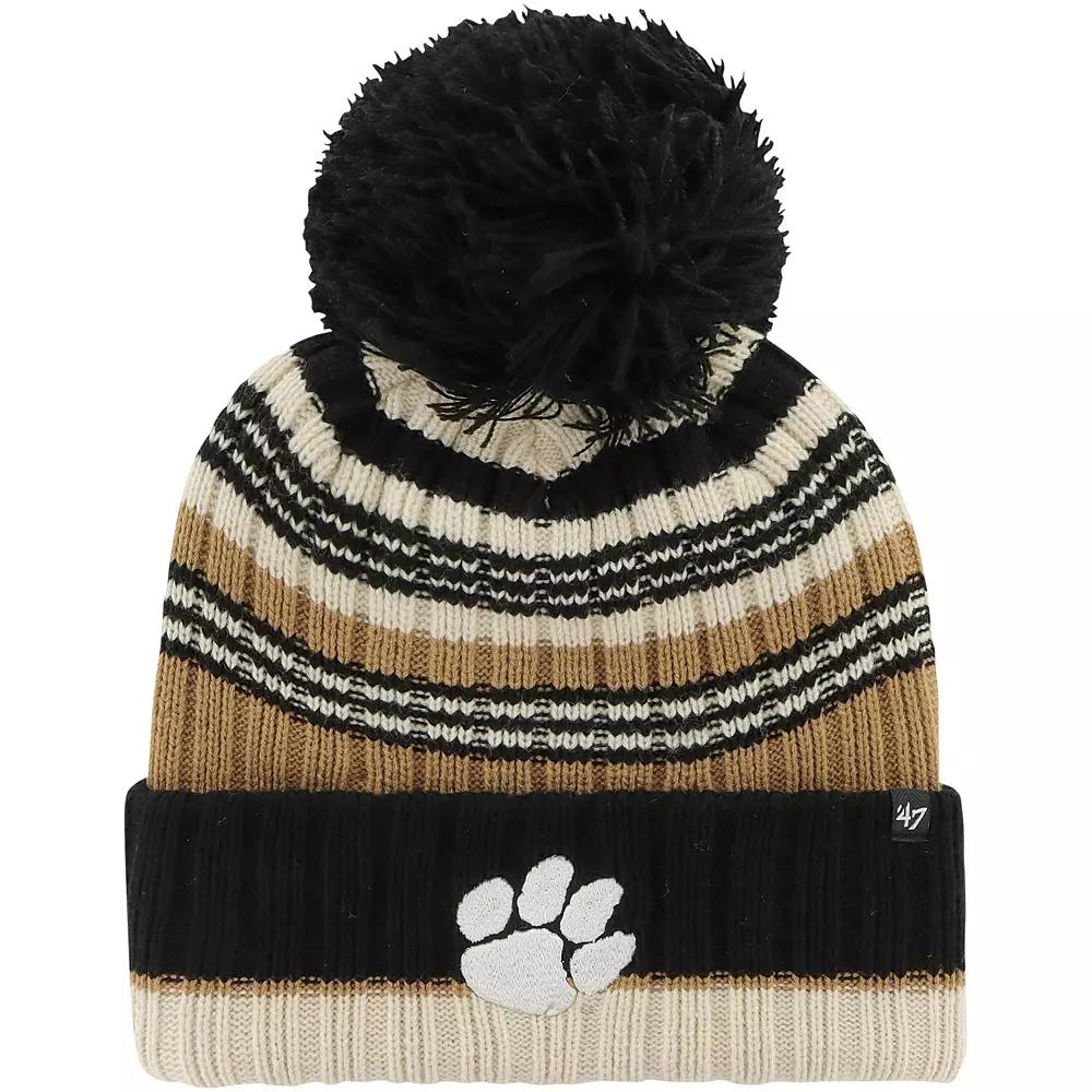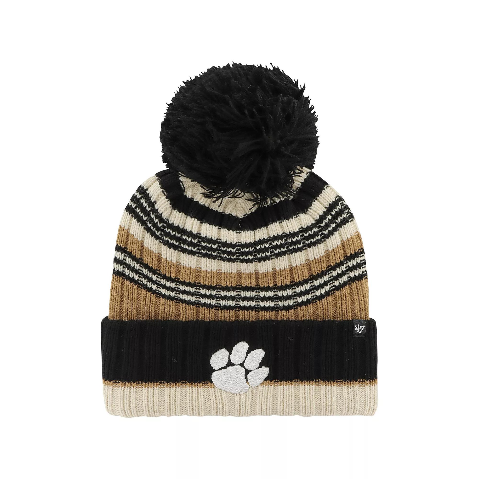 Warm your noggin with a stylish showing of Clemson Tigers spirit by snagging this Barista knit hat from 47. It features a bold Clemson Tigers graphic embroidered on the cuff and a multi-colored striped design to top things off excellently. The pom offers a jovial spin thats all the more welcome when you want some added head warmth.