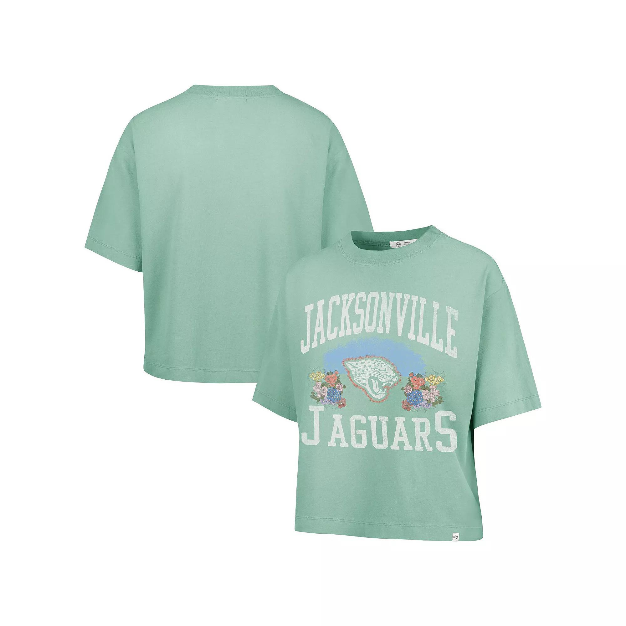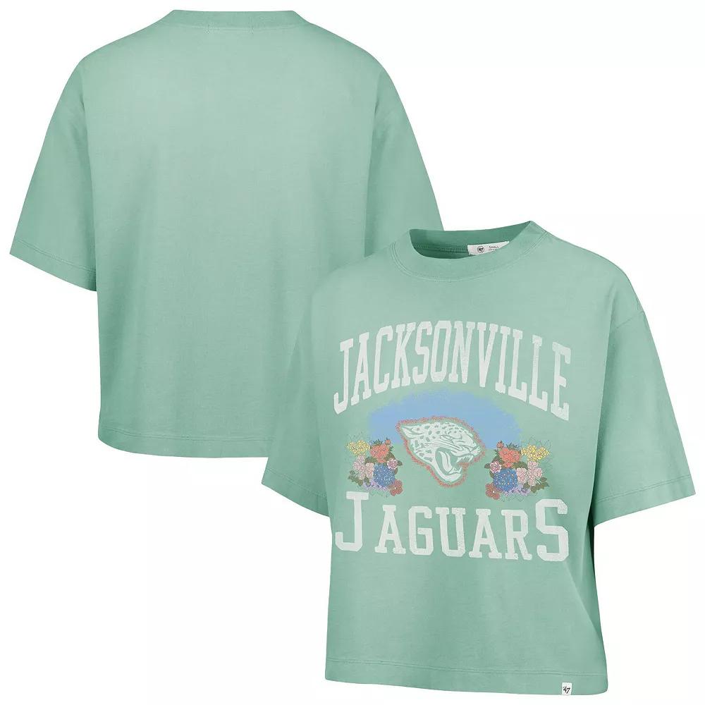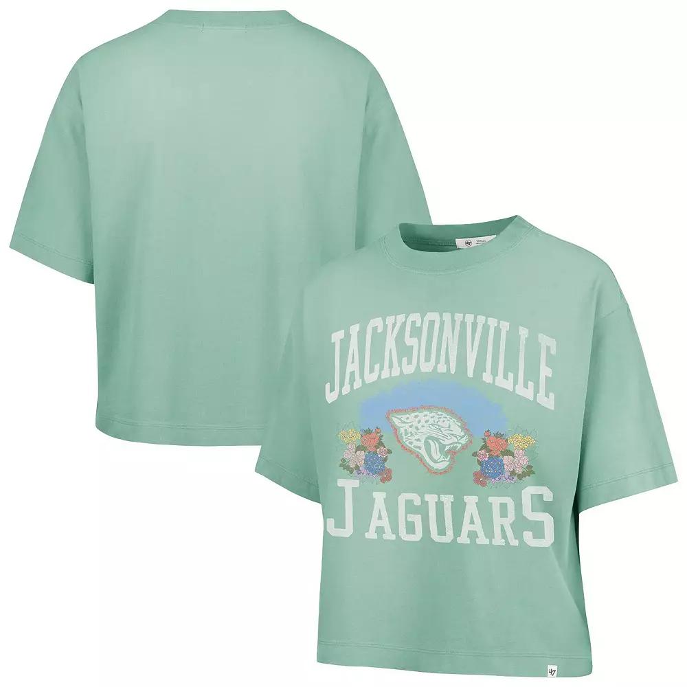 Embrace a breezy, cropped look while repping the Jacksonville Jaguars with this 47 Florentina Montauk Cropped T-Shirt. This stylish tee features a trendy cropped hem and drop shoulders for a relaxed, flattering fit. The screen-printed team logo and floral design on the front add a touch of flair to your game-day look.Embrace a breezy, cropped look while repping the Jacksonville Jaguars with this 47 Florentina Montauk Cropped T-Shirt. This stylish tee features a trendy cropped hem and drop shoulders for a relaxed, flattering fit. The screen-printed team logo and floral design on the front add a touch of flair to your game-day look.PRODUCT FEATURESMaterial: 100% CottonCrew neckMachine wash, tumble dry lowOfficially licensedImportedShort sleeveBrand: 47Cropped hem and drop shoulders for a relaxed trendy lookDistressed screen print team logo and floral design on front Gender: female. Age Group: adult.
