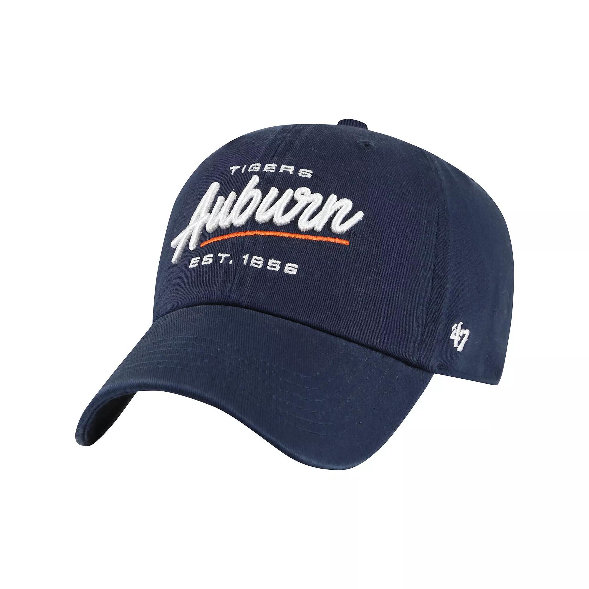 Designed by '47, this Sidney Clean Up hat is ready to help you cheer your Auburn Tigers to victory. An adjustable closure and relaxed construction pair for a comfortable fit and feel. Bold Auburn Tigers embroidery featuring the franchise's establishing year spotlights your devotion. Officially licensed. Unstructured relaxed fit. Low Crown. Adjustable fabric strap with snap buckle. Brand: '47. Curved bill. Material: 100% Cotton. Wipe clean with a damp cloth. Imported. Six panels with eyelets. Embroidered graphics with raised details. Woven clip tag. One size fits most. Color: Navy. Gender: female. Age Group: adult.