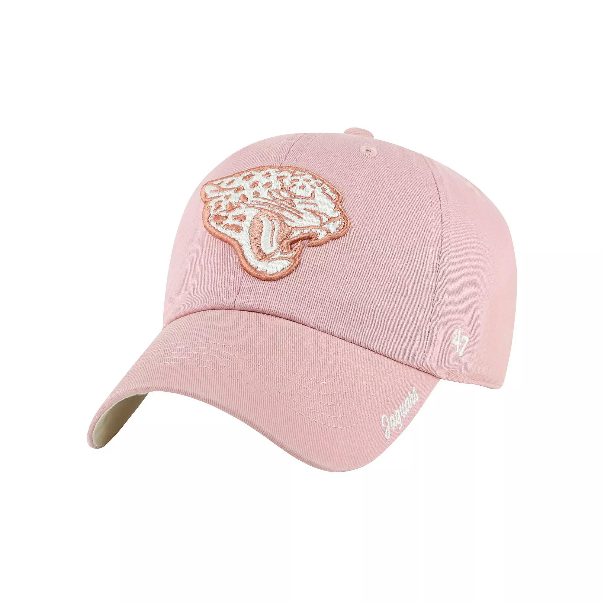 Add some flair to your Jacksonville Jaguars game-day look with this '47 Ballpark Cheer Dusty Rose Clean Up Adjustable Hat. Made from 100% cotton, this hat features six panels with eyelets for optimal ventilation, keeping your head cool and comfortable all day long. The monochromatic pink team logo with white outlines beautifully pops against the dusty rose crown, while the white cursive team wordmark on the visor adds a touch of elegance. Material: 100% Cotton. Unstructured relaxed fit. Officially licensed. Curved bill. Low Crown. Wipe clean with a damp cloth. Adjustable fabric strap with snap buckle. Six panels with eyelets for ventilation. One size fits most. Brand: '47. Contrast-color undervisor. Imported. White cursive team wordmark on visor. Monochromatic pink team logo with white outlines embroidered on front panels. Gender: female. Age Group: adult.