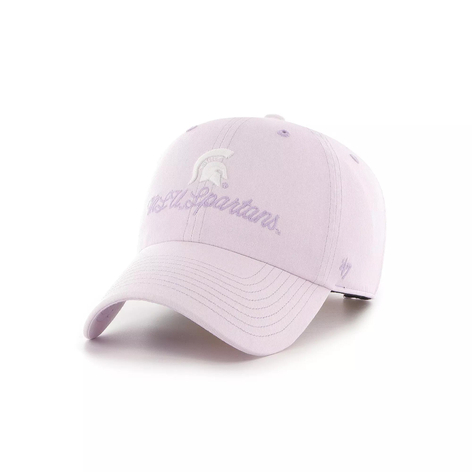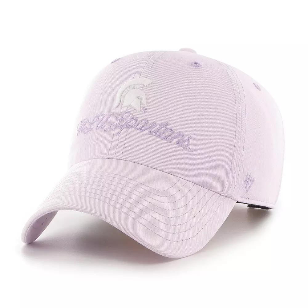 Proudly represent your Michigan State Spartans with a bold look up top by adding this Haze Clean Up adjustable hat from 47. It features an unmistakable Michigan State Spartans graphic embroidered on the front panels along with a single-color look that makes this cap a strong choice to pair with your favorite team tee or another team accessory. The adjustable closure also makes securing the perfect fit a cinch.Proudly represent your Michigan State Spartans with a bold look up top by adding this Haze Clean Up adjustable hat from 47. It features an unmistakable Michigan State Spartans graphic embroidered on the front panels along with a single-color look that makes this cap a strong choice to pair with your favorite team tee or another team accessory. The adjustable closure also makes securing the perfect fit a cinch.PRODUCT FEATURESWipe clean with a damp clothUnstructured relaxed fitOfficially licensedImportedRaised embroideryOne size fits mostwashed out lookMaterial: 100% CottonCurved billSix panels with eyeletsEmbroidered graphicsLow crownBrand: 47Adjustable fabric strap with snap buckle Size: One Size. Color: Purple. Gender: female. Age Group: adult.