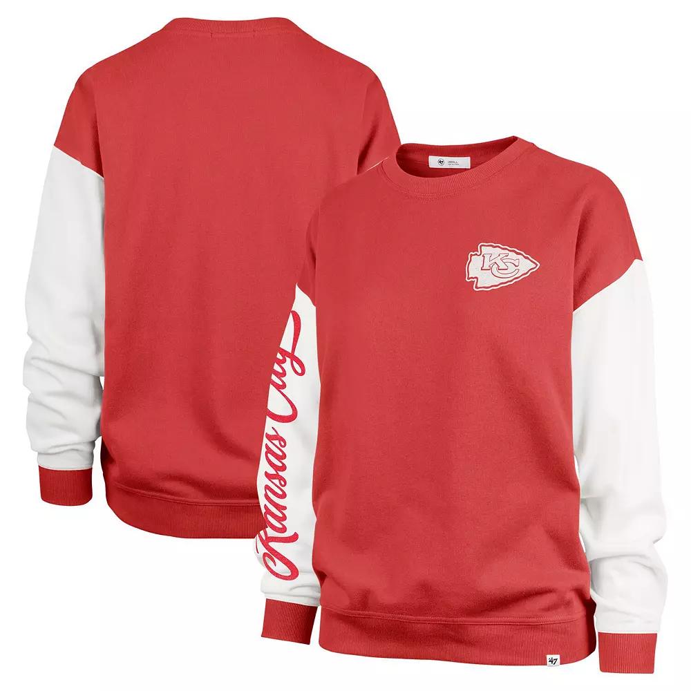 This '47 Double Header Rise Andie Pullover Sweatshirt lets you rep your Kansas City Chiefs pride in style and comfort. This ultra-soft sweatshirt features color-block sleeves and an oversized fit for a casual, comfy feel. Printed team graphics on the left chest and right sleeve let everyone know who you're rooting for on game day.This '47 Double Header Rise Andie Pullover Sweatshirt lets you rep your Kansas City Chiefs pride in style and comfort. This ultra-soft sweatshirt features color-block sleeves and an oversized fit for a casual, comfy feel. Printed team graphics on the left chest and right sleeve let everyone know who you're rooting for on game day.PRODUCT FEATURESOfficially licensedPulloverOversized FitImportedLong sleeveMaterial: 60% Cotton/40% PolyesterMachine wash, tumble dry lowMidweight sweatshirt suitable for moderate temperaturesColor Block SleevesBrand: '47Printed team graphics on left chest and right sleeve Color: Red. Gender: female. Age Group: adult.