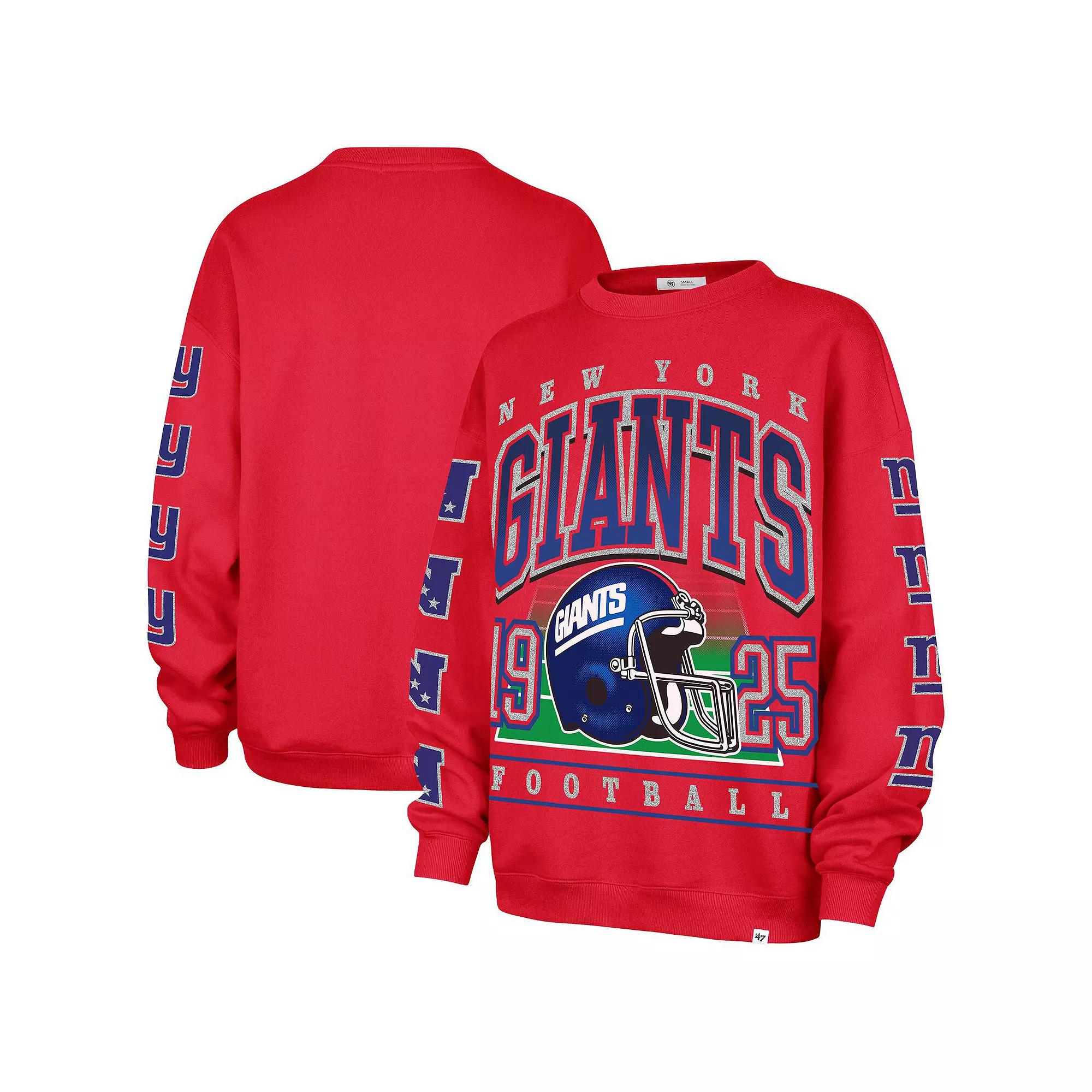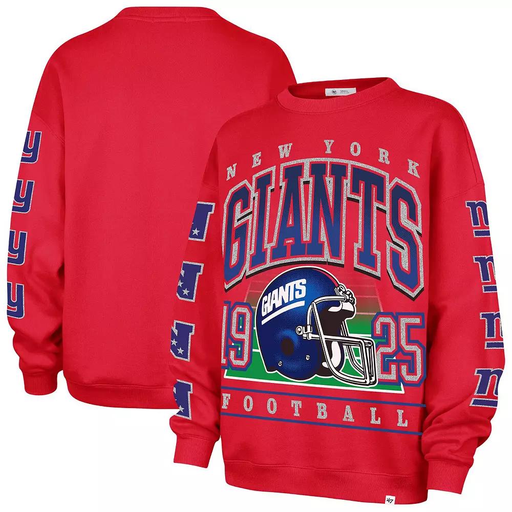 Stay cozy while showing off your team pride in this New York Giants Go Big Oversized Pullover Sweatshirt from '47. The oversized fit provides a comfortable and relaxed feel, perfect for layering or lounging. The screen print team graphics with glitter details add a touch of sparkle and team pride, making this sweatshirt a standout piece in your New York Giants collection. Officially licensed. Brand: '47. Material: 60% Cotton/40% Polyester. Machine wash, tumble dry low. Imported. Pullover. Screen print team graphics with glitter details. Midweight pullover suitable for moderate temperatures. Rib knit cuffs and hem. Oversized fit. Crew neck. Long sleeve. Color: Red. Gender: female. Age Group: adult.