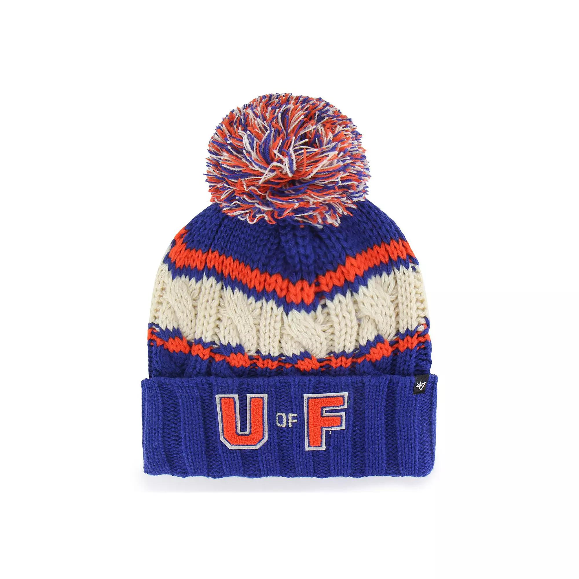 Stay cozy and rep your Florida Gators in this Emma Cuffed Knit Hat with Pom from '47.Made from soft and warm acrylic, this hat is designed to keep you warm during the coldest days of the season. The chenille patch and chainstitch lettering proudly display your allegiance to the Florida Gators, while the cuffed design and pom on top add a classic touch. Imported. Material: 100% Acrylic. Wipe clean with a damp cloth. Knit design with woven clip tag. Chenille patch and chainstitch lettering. Brand: '47. Officially licensed. Cuffed knit hat. Pom on top. Size: One Size. Color: Blue. Gender: female. Age Group: adult. Material: COTTON.