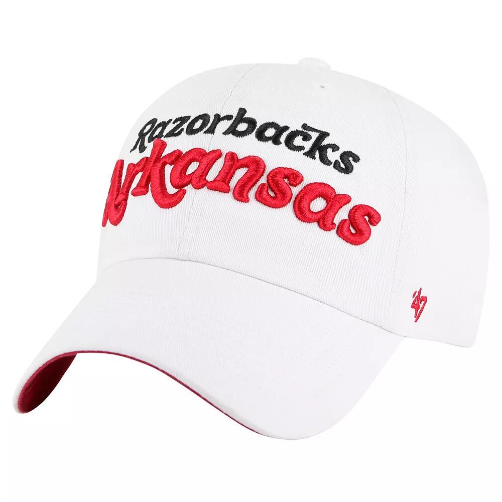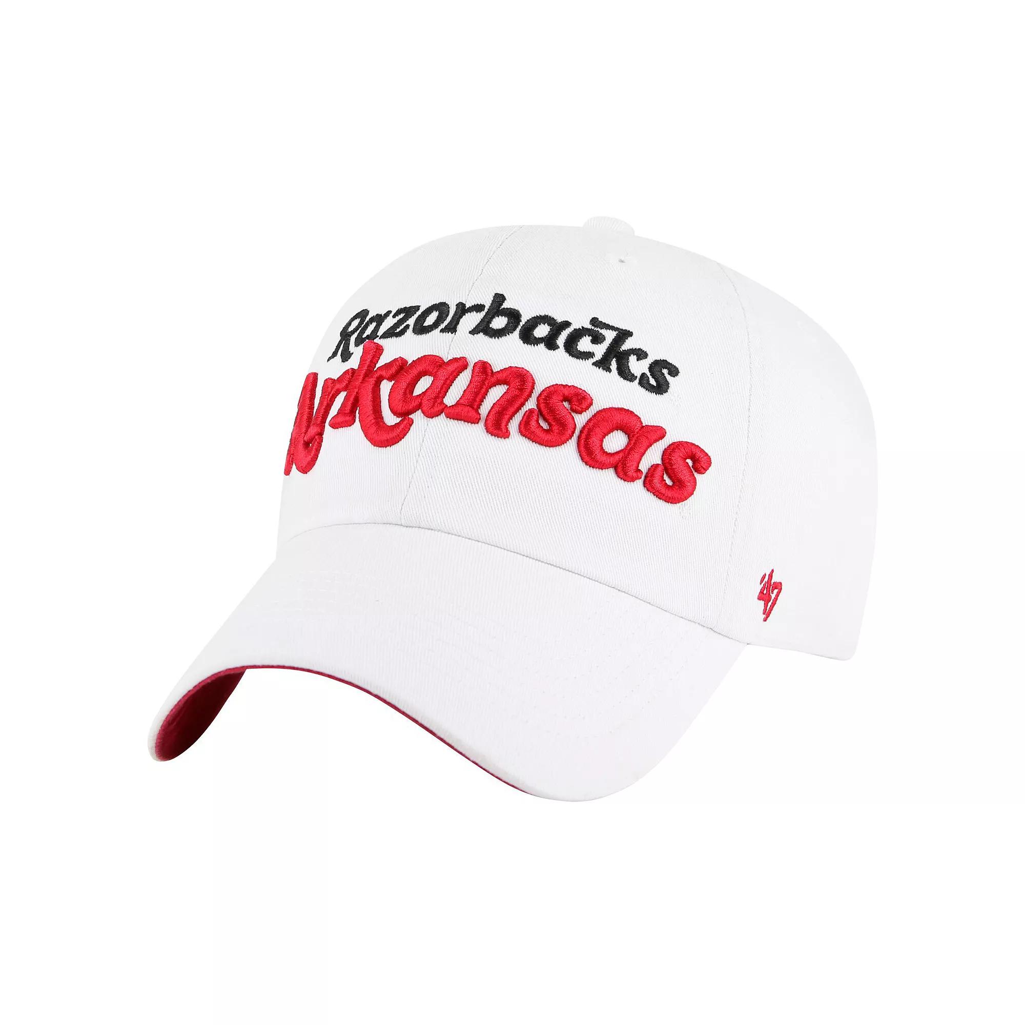 Add a subtle touch to your Arkansas Razorbacks game-day look with this '47 Pensacola Clean Up Adjustable Hat. The relaxed crown and curved visor of this '47 Clean Up hat provides a comfortable and stylish fit for any Arkansas Razorbacks fan. Made from 100% cotton, this hat features embroidered team lettering across the front that will let everyone know who you're rooting for on game day. Unstructured relaxed fit. Adjustable fabric strap with snap buckle. Officially licensed. Curved bill. Brand: '47. Wipe clean with a damp cloth. Six solid panels with eyelets. Low Crown. Material: 100% Cotton. Embroidered graphics with raised details. Imported. One size fits most. Color: White. Gender: female. Age Group: adult.