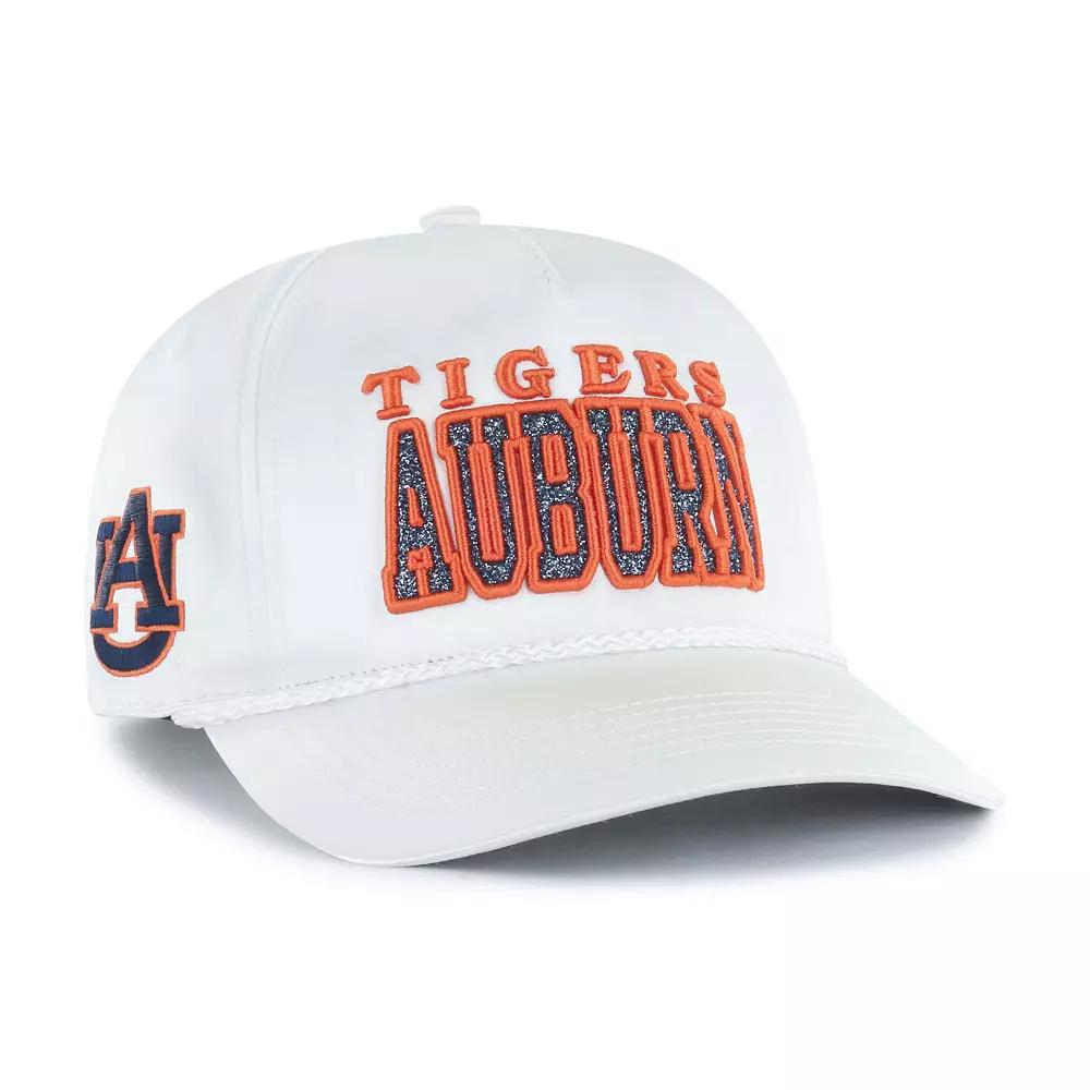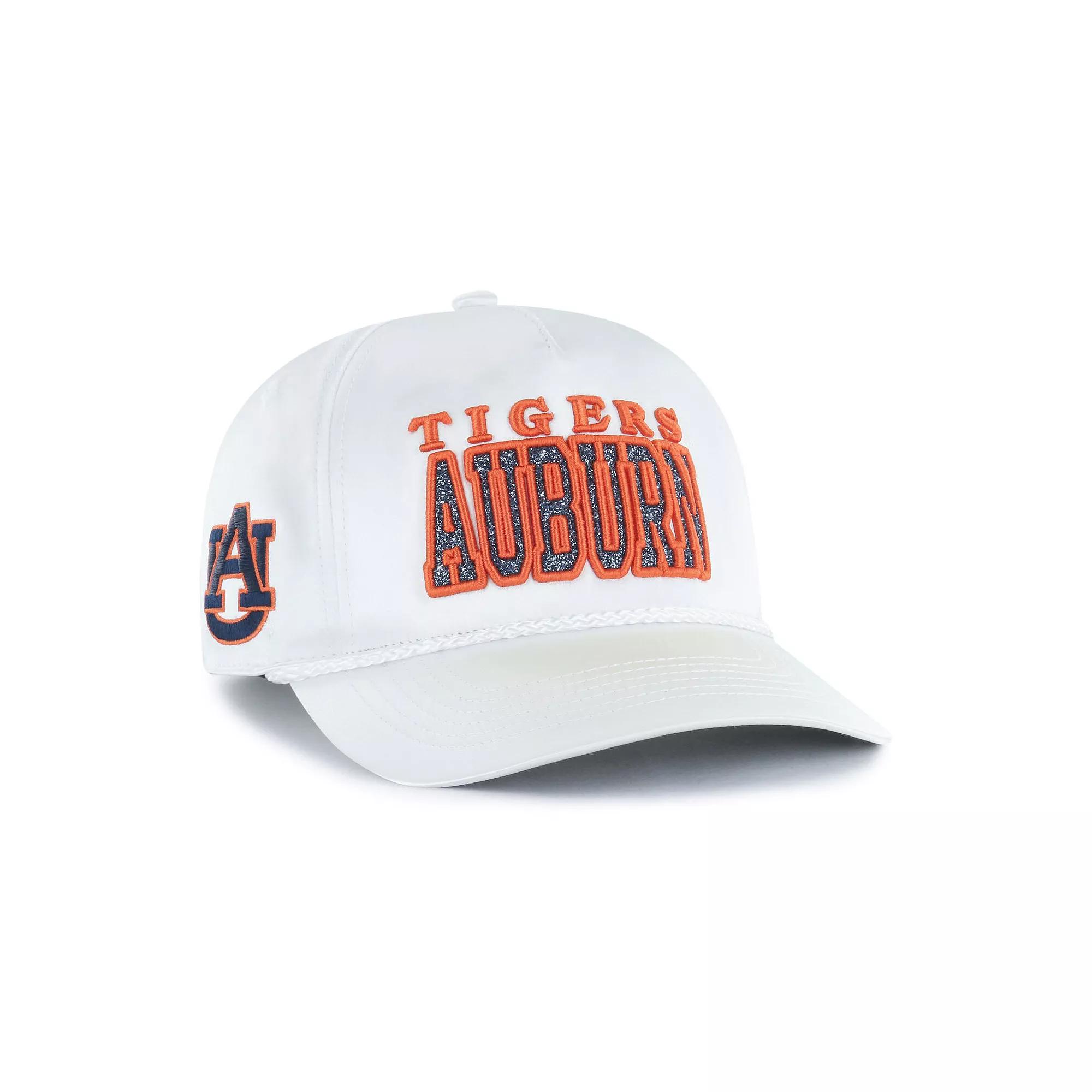 Let your Auburn Tigers fandom sparkle for all to see in this Outspoken Hitch Adjustable Hat from '47.Featuring a satin finish and stylish rope embellishment across the visor, this Auburn Tigers cap offers a unique and eye-catching design that sets it apart from the rest. The embroidered team wordmark with sparkling accents adds a touch of opulence, making it the perfect accessory for any stylish fan ready to catch the big win. Satin finish. One size fits most. Snap Closure. Material: 100% Polyester. Machine wash, tumble dry low. The Hitch is a retro-inspired silhouette constructed with a pinched five-panel crown and a braided rope cord. Curved bill. Mid and rear panels with eyelets. Embroidered team logo on right-side panel. Officially licensed. Mid Crown. Solid front panel. Brand: '47. Imported. Embroidered team wordmark with raised details and sparkling accents on front panel. Structured fit. Color: White. Gender: female. Age Group: adult. Material: COTTON.