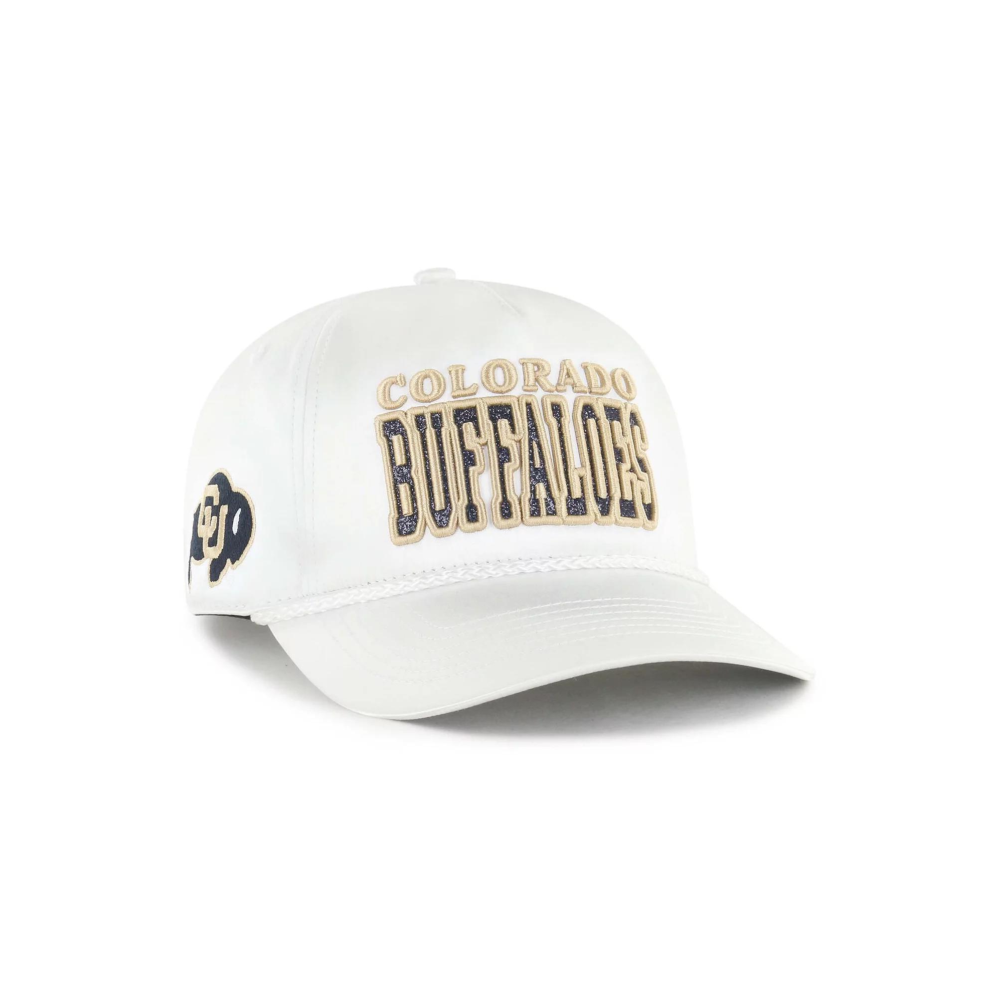 Let your Colorado Buffaloes fandom sparkle for all to see in this Outspoken Hitch Adjustable Hat from '47.Featuring a satin finish and stylish rope embellishment across the visor, this Colorado Buffaloes cap offers a unique and eye-catching design that sets it apart from the rest. The embroidered team wordmark with sparkling accents adds a touch of opulence, making it the perfect accessory for any stylish fan ready to catch the big win. Brand: '47. Structured fit. Mid and rear panels with eyelets. One size fits most. Imported. Satin finish. Embroidered team wordmark with raised details and sparkling accents on front panel. The Hitch is a retro-inspired silhouette constructed with a pinched five-panel crown and a braided rope cord. Curved bill. Snap Closure. Material: 100% Polyester. Mid Crown. Solid front panel. Machine wash, tumble dry low. Embroidered team logo on right-side panel. Officially licensed. Color: White. Gender: female. Age Group: adult. Material: COTTON.