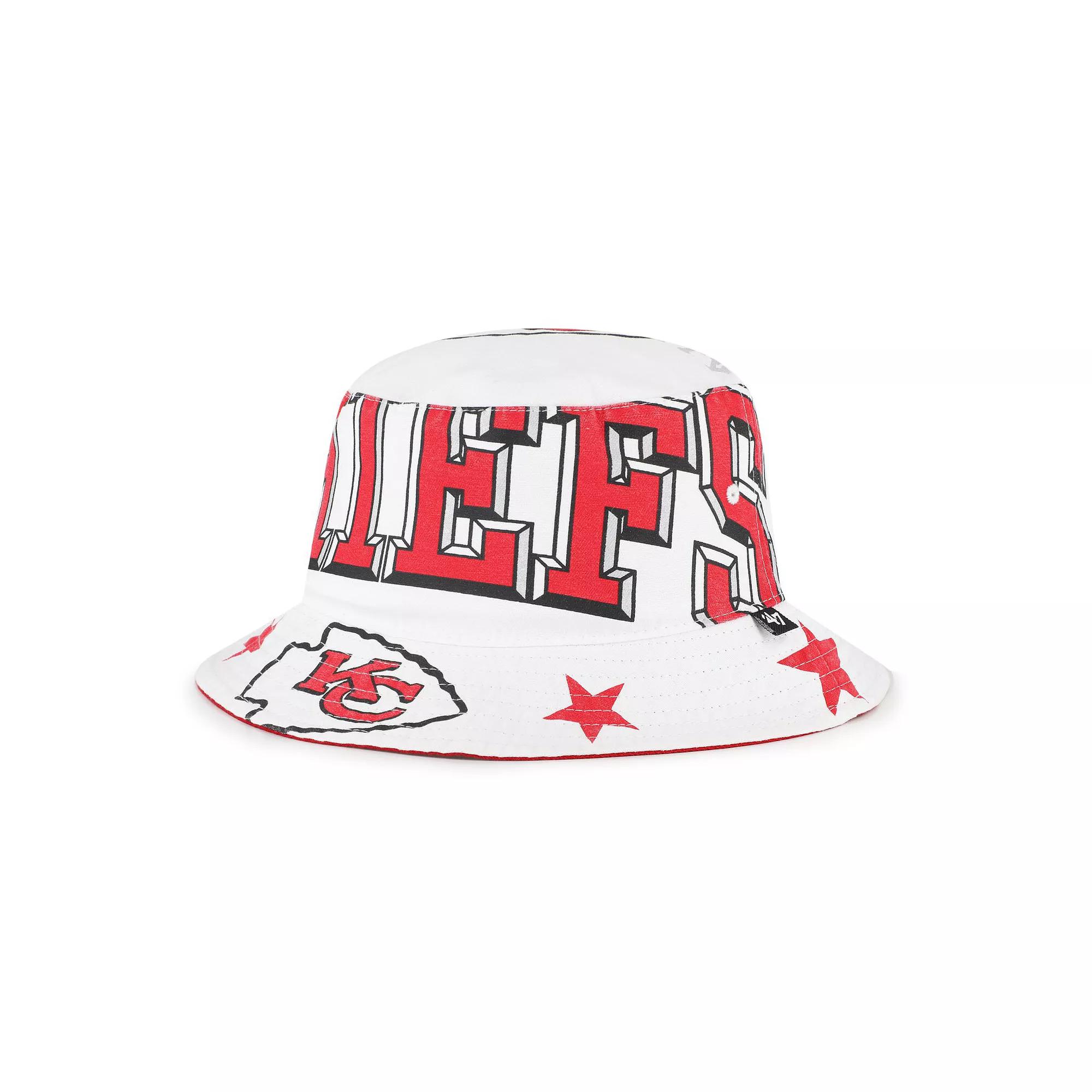 Show your Kansas City Chiefs pride in unique fashion with this Energize Bucket Hat from '47.The allover sublimated team name and logo graphics incorporate your favorite NFL team into your outfit in a bold and fashionable way. Made from soft cotton with two eyelets on each side for additional ventilation, this bucket hat is the perfect accessory for sunny game days or casual outings. Brand: '47. Two eyelets on each side of hat. Officially licensed. Sublimated team name and logo graphics all over. Wipe clean with a damp cloth. Material: 100% Cotton. Woven tag. Imported. Size: One Size. Color: White. Gender: female. Age Group: adult.