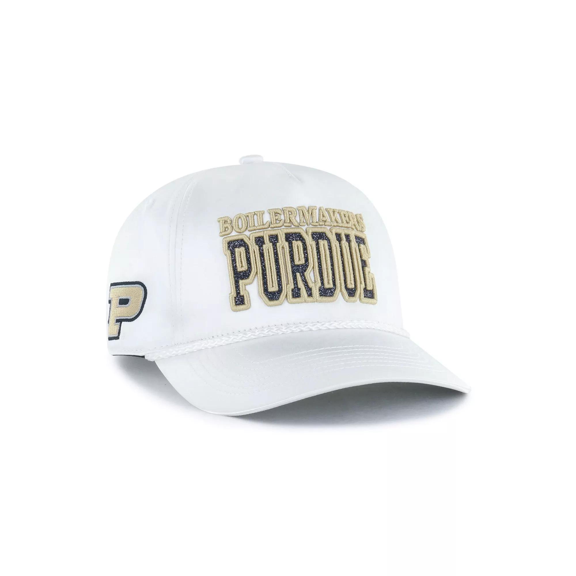 Let your Purdue Boilermakers fandom sparkle for all to see in this Outspoken Hitch Adjustable Hat from '47.Featuring a satin finish and stylish rope embellishment across the visor, this Purdue Boilermakers cap offers a unique and eye-catching design that sets it apart from the rest. The embroidered team wordmark with sparkling accents adds a touch of opulence, making it the perfect accessory for any stylish fan ready to catch the big win. Officially licensed. Curved bill. Machine wash, tumble dry low. Embroidered team wordmark with raised details and sparkling accents on front panel. Brand: '47. Mid Crown. Material: 100% Polyester. Mid and rear panels with eyelets. Imported. One size fits most. Satin finish. Embroidered team logo on right-side panel. The Hitch is a retro-inspired silhouette constructed with a pinched five-panel crown and a braided rope cord. Structured fit. Snap Closure. Solid front panel. Color: White. Gender: female. Age Group: adult. Material: COTTON.