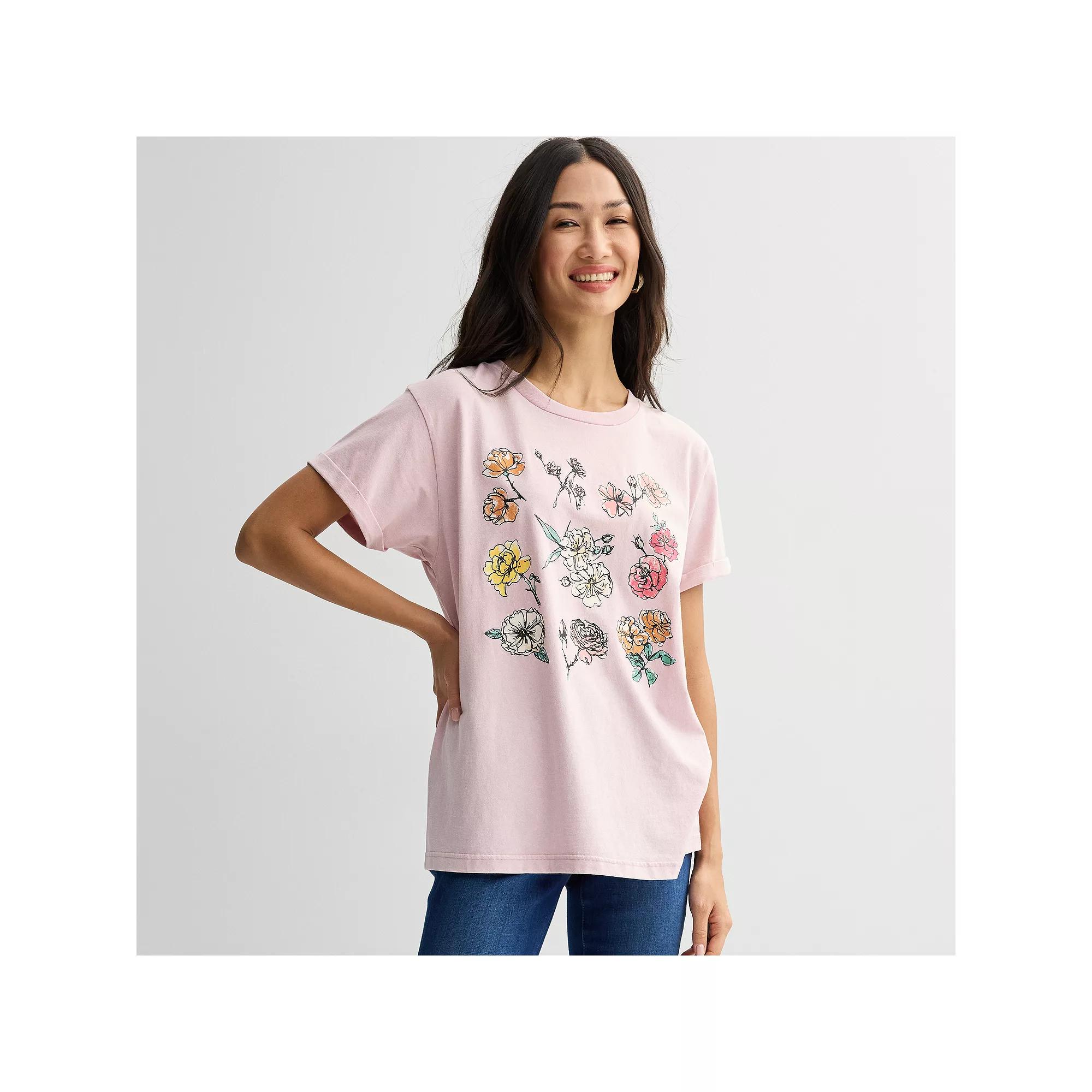 She'll love the look and feel of this Women's Abstract Flowers Graphic Tee.She'll love the look and feel of this Women's Abstract Flowers Graphic Tee.FEATURES Crewneck Roll cuff short sleevesFABRIC & CARE Cotton, polyester Machine wash and tumble dry low Imported Size: Medium. Color: Bleached Mauve. Gender: female. Age Group: adult.