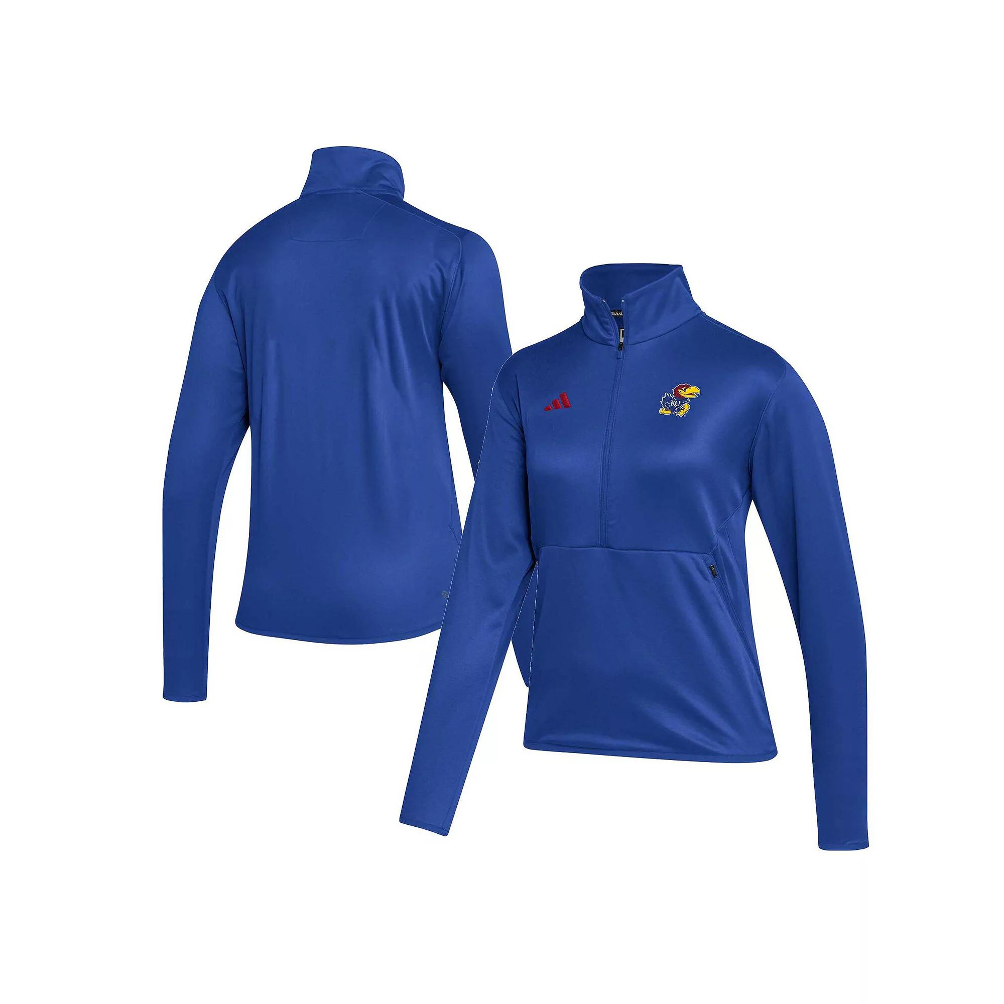 Stay cool and dry in this Kansas Jayhawks Sideline top from adidas. As the same official gear worn by the players and coaching staff, it features moisture-absorbing AEROREADY technology and raglan sleeves that provide a flexible range of motion. Zippered pockets keep your essentials secure in this Kansas Jayhawks half-zip.Stay cool and dry in this Kansas Jayhawks Sideline top from adidas. As the same official gear worn by the players and coaching staff, it features moisture-absorbing AEROREADY technology and raglan sleeves that provide a flexible range of motion. Zippered pockets keep your essentials secure in this Kansas Jayhawks half-zip.PRODUCT FEATURESAEROREADY technology absorbs moisture and makes you feel dryBrand: adidasPulloverRaglan sleevesMaterial: 100% CO; 100% Recycled PolyesterLong sleeveMachine wash, tumble dry low1/2-ZipHeat-sealed tackle twill appliqueTwo front zippered pocketsOfficially licensedOlympic collarElastic trim on cuffs and hemFleece liningImportedLightweight top suitable for mild temperaturesZipper garages Size: XL. Color: Blue. Gender: female. Age Group: adult.