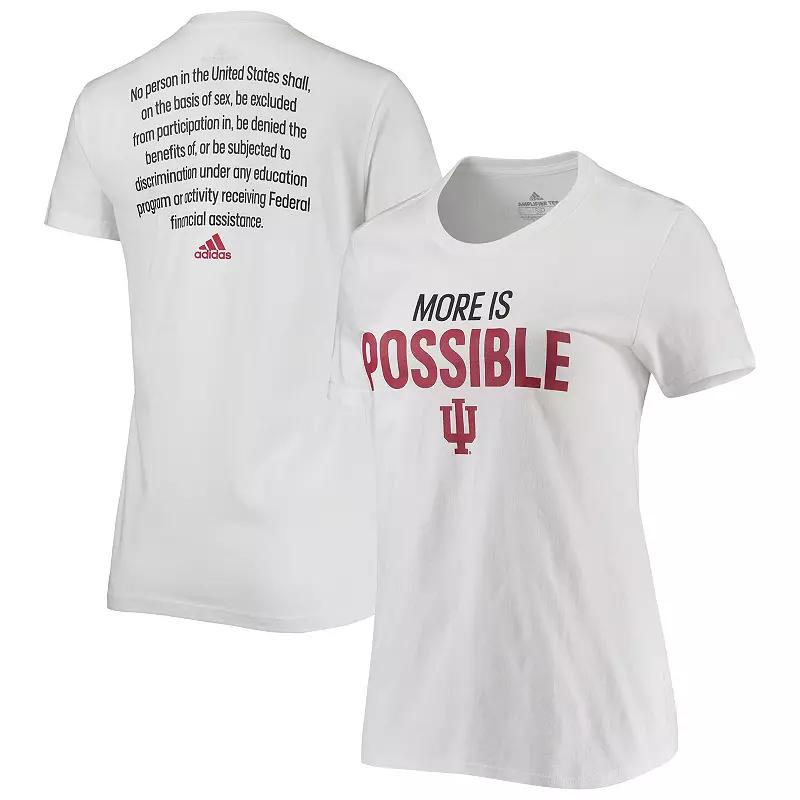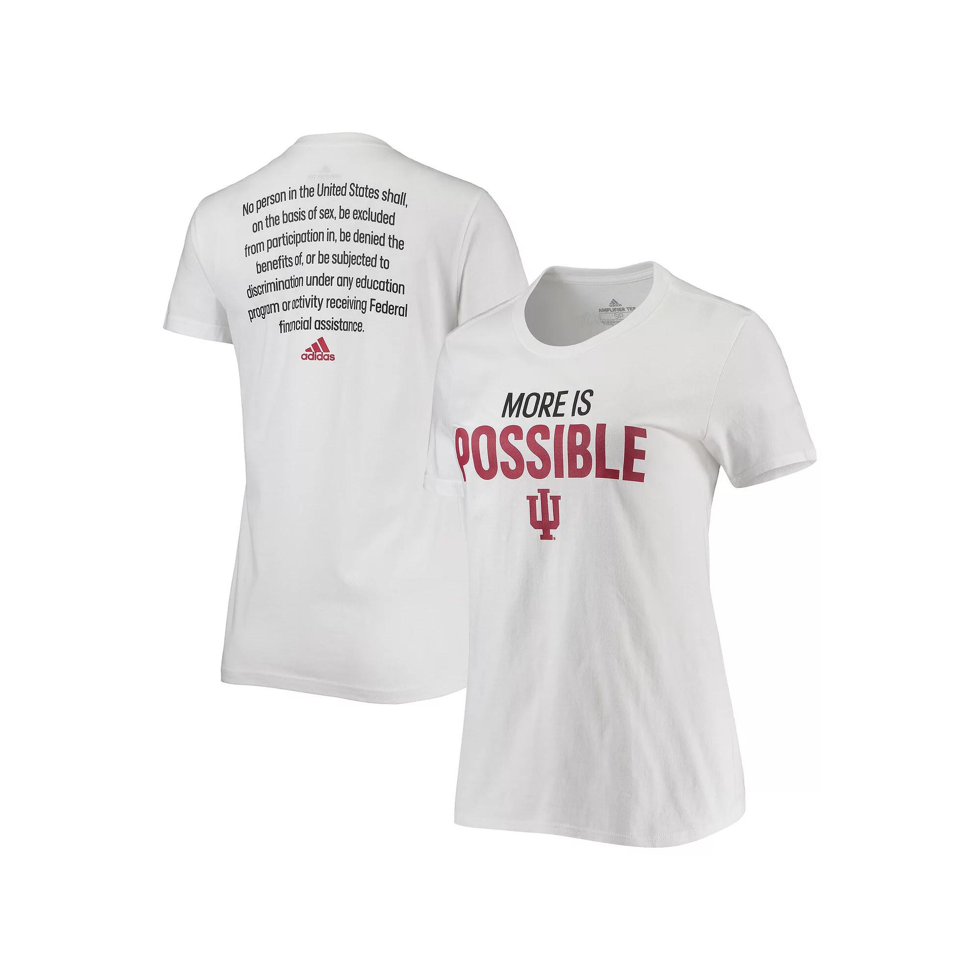 Let your Indiana Hoosiers spirit stand out with this More Is Possible T-shirt by adidas. The classic crew design and soft fabric pair for the ultimate casual tee. Bold Indiana Hoosiers graphics ensure that your fandom is more than noticeable.Let your Indiana Hoosiers spirit stand out with this More Is Possible T-shirt by adidas. The classic crew design and soft fabric pair for the ultimate casual tee. Bold Indiana Hoosiers graphics ensure that your fandom is more than noticeable.Brand: adidasMaterial: 100% CottonCrew neckImportedMachine wash, tumble dry lowShort sleeveOfficially licensedTagless CollarScreen print graphics Color: White. Gender: female. Age Group: adult.