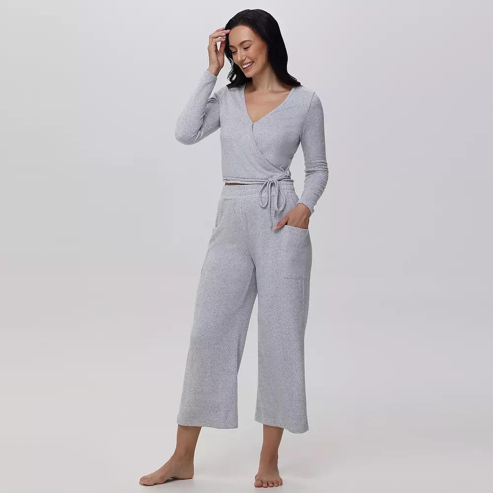 Youll sleep in comfort in this womens Adyson Parker ballet wrap pajama top & pajama pants set. Click on this INTIMATES & SLEEPWEAR GUIDE to find the perfect fit and more! Youll sleep in comfort in this womens Adyson Parker ballet wrap pajama top & pajama pants set. Click on this INTIMATES & SLEEPWEAR GUIDE to find the perfect fit and more! FEATURES Includes pajama top and pajama pants Cozy construction Straight hem Top: long set-in sleeves, v-neck Pants: elastic waistband, 2 side seam patch pocketsFIT & SIZING Regular fit Top: 18-in. length from shoulder to hem Pants: 25-in. inseam 11 3/4-in. wide leg opening Midrise sits on the high hipFABRIC & CARE Polyester, spandex Machine wash Imported Size: Medium. Color: Light Grey. Gender: female. Age Group: adult.