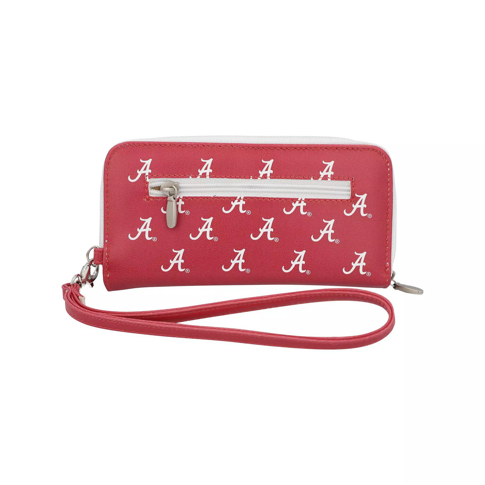 Even your every day accessories can show off unwavering Alabama Crimson Tide spirit with this wristlet wallet. It features eight credit card slots, two bill slots and a cellphone slot, making it easy to carry all of your game day essentials. The zip-around closure helps keep your valuables safe while youre cheering on the Alabama Crimson Tide.Even your every day accessories can show off unwavering Alabama Crimson Tide spirit with this wristlet wallet. It features eight credit card slots, two bill slots and a cellphone slot, making it easy to carry all of your game day essentials. The zip-around closure helps keep your valuables safe while youre cheering on the Alabama Crimson Tide.Officially licensedWipe clean with a damp clothMaterial: 100% Synthetic LeatherBrand: Eagles WingsImportedDetachable wrist strap with lobster claw closureZip-around closureOne cellphone slotTwo bill slotsPrinted graphicsOne interior zip pocketMeasures approx. 4 x 1 x 7.5One exterior zip pocketEight credit card slots Size: One Size. Gender: female. Age Group: adult.
