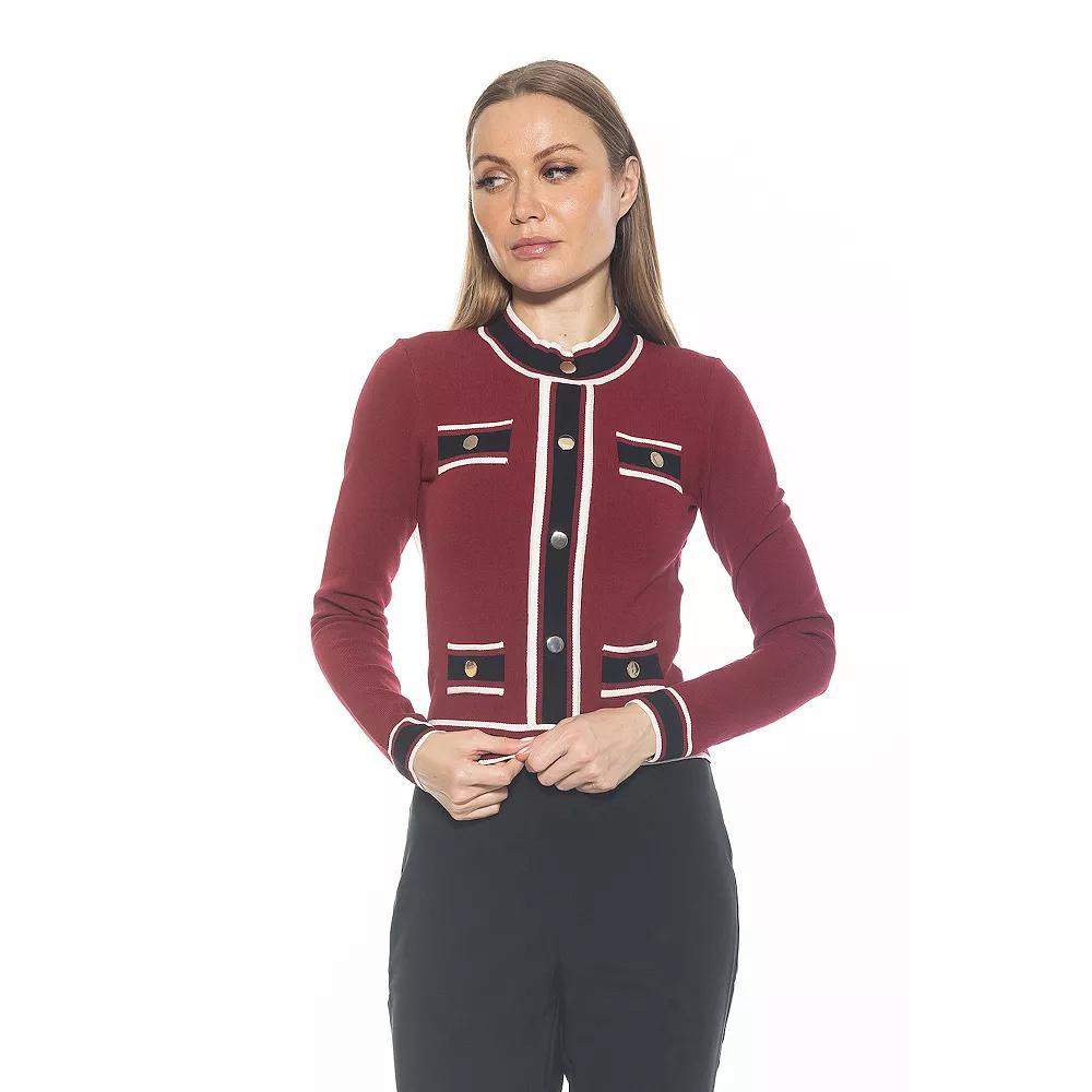 The Kiley fully fashion knit long sleeve button down from ALEXIA ADMOR jacket is a must have piece for your wardrobe. Click on this WOMENS GUIDE to find the perfect fit and more! The Kiley fully fashion knit long sleeve button down from ALEXIA ADMOR jacket is a must have piece for your wardrobe. Click on this WOMENS GUIDE to find the perfect fit and more! FEATURES 4 front fake welt pockets Zipper closure Set-in sleeves Long sleeves CrewneckFIT & SIZING 20 1/4-in. length from shoulder to hem True to sizeFABRIC & CARE Polyester, viscose Hand wash Imported Size: Small. Color: Red Team. Gender: female. Age Group: adult.