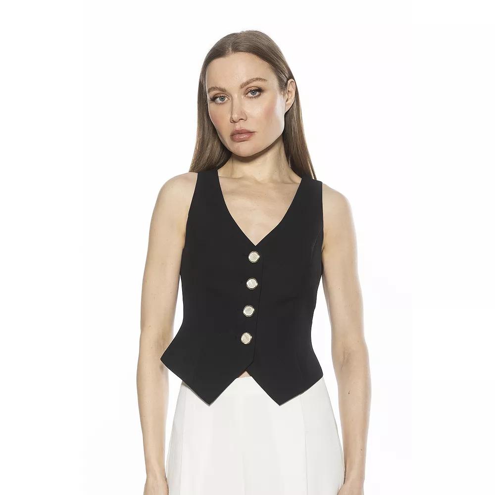 Express your unique style with this women's ALEXIA ADMOR Liliana sleeveless button down vest top. Click on this WOMEN'S GUIDE to find the perfect fit and more!Express your unique style with this women's ALEXIA ADMOR Liliana sleeveless button down vest top. Click on this WOMEN'S GUIDE to find the perfect fit and more!FEATURES U-neck Sleeveless Button closure Fully lined True to sizeFIT & SIZING 17 1/2-in. length from shoulder to hemFABRIC & CARE Polyester, spandex Hand wash and line dry Imported Size: 8. Color: Black. Gender: female. Age Group: adult.