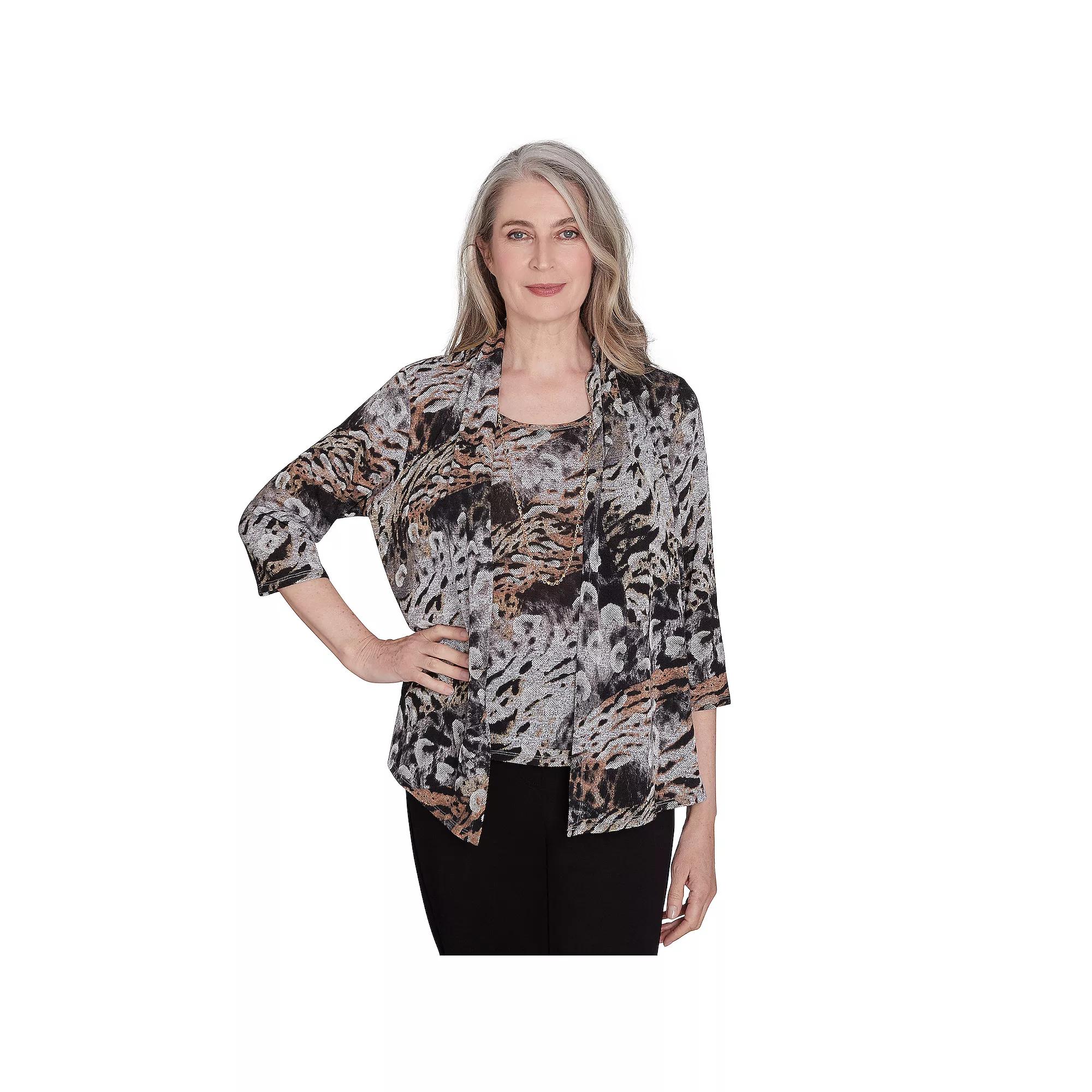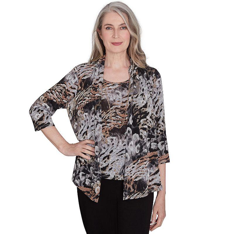 Classic style is yours with this womens Two-in-One Top from Alfred Dunner.Click on this WOMENS GUIDE to find the perfect fit and more! Classic style is yours with this womens Two-in-One Top from Alfred Dunner.Click on this WOMENS GUIDE to find the perfect fit and more! FEATURES Crewneck 3/4-length sleeves No closure - pullover stylingFIT & SIZING 23-in. length from shoulder to hemFABRIC & CARE Polyester, metal, spandex Machine wash and tumble dry Imported Size: M Petite. Color: Neutral. Gender: female. Age Group: adult.