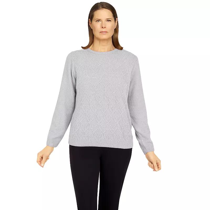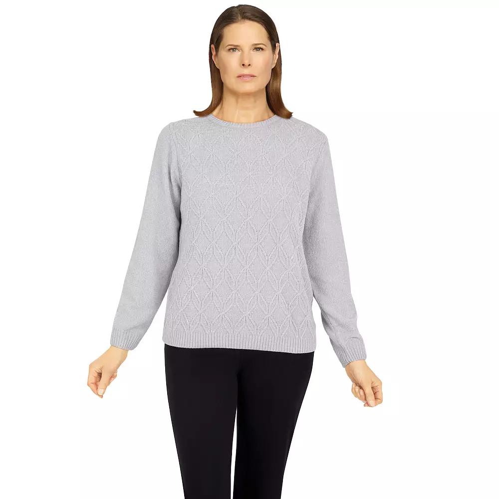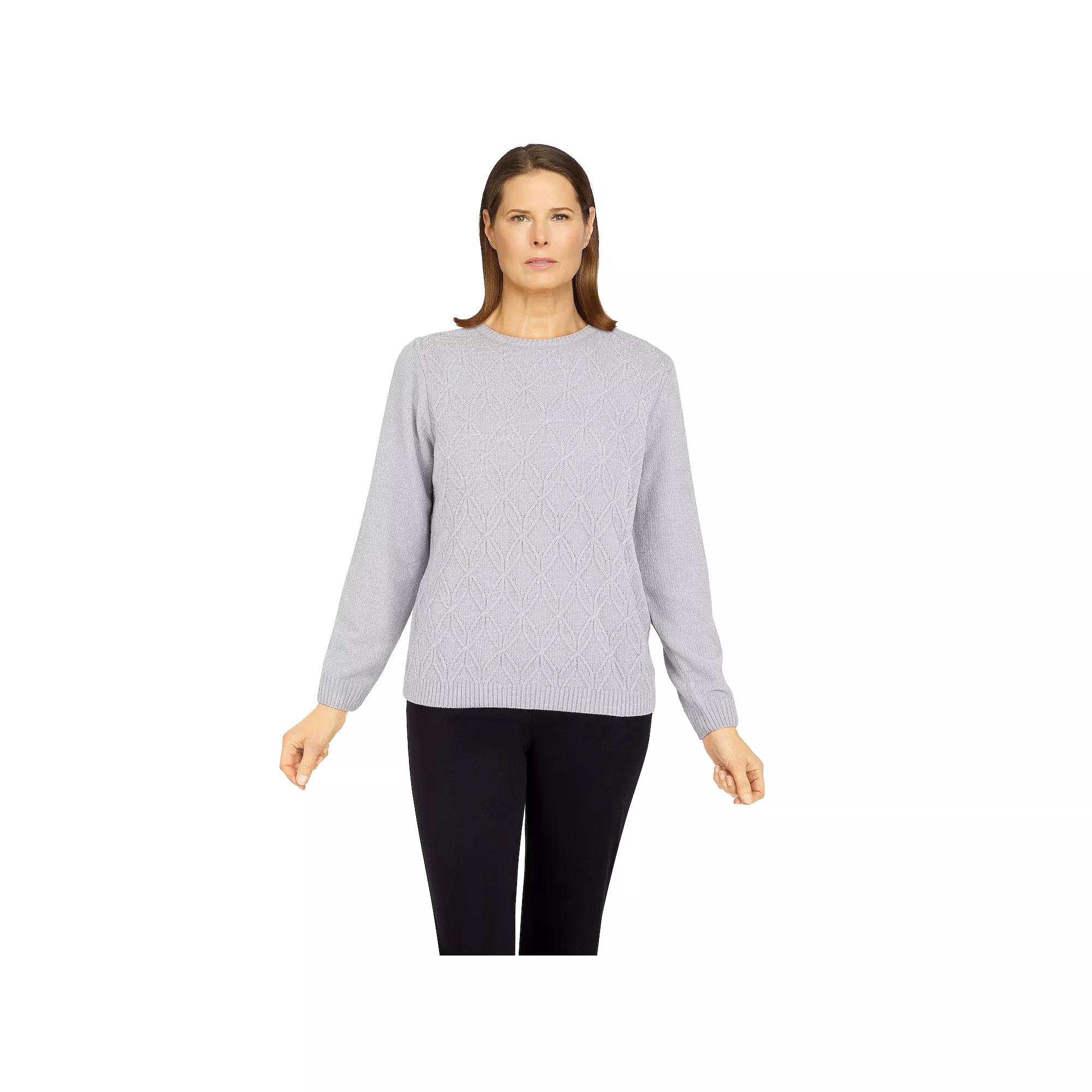 Upgrade your look with this women's must-have sweater from Alfred Dunner that will keep you warm and fashionable all season long. This cozy, solid chenille pullover is adorned with long sleeves, a straight hemline and a crewneck.Click on this WOMEN'S GUIDE to find the perfect fit and more!Upgrade your look with this women's must-have sweater from Alfred Dunner that will keep you warm and fashionable all season long. This cozy, solid chenille pullover is adorned with long sleeves, a straight hemline and a crewneck.Click on this WOMEN'S GUIDE to find the perfect fit and more!FEATURES Crewneck Long sleeves No closure - pullover stylingFIT & SIZING 24 3/4-in. length from shoulder to hemFABRIC & CARE Acrylic Hand wash and line dry ImportedRESPONSIBLE Phthalate free Size: Large. Color: Gray. Gender: female. Age Group: adult.
