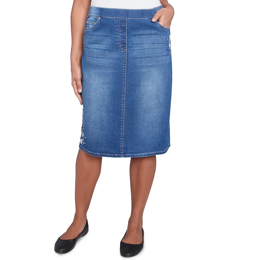 This embroidered skirt blooms with vibrant energy, featuring intricate floral designs on the hem and just beneath the pockets, bringing a touch of natures beauty wherever you go. Click on this WOMENS GUIDE to find the perfect fit and more!This embroidered skirt blooms with vibrant energy, featuring intricate floral designs on the hem and just beneath the pockets, bringing a touch of natures beauty wherever you go. Click on this WOMENS GUIDE to find the perfect fit and more!FEATURES No closure - pull-on styling 2 pocketsFIT & SIZING Elastic waistband Midrise sits on the high hip 26 3/4-in. length Midi length hits below the kneeFABRIC & CARE Cotton, polyester, spandex, viscose Machine wash and tumble dry Imported Size: 12. Color: Medium Indigo. Gender: female. Age Group: adult. Material: denim.