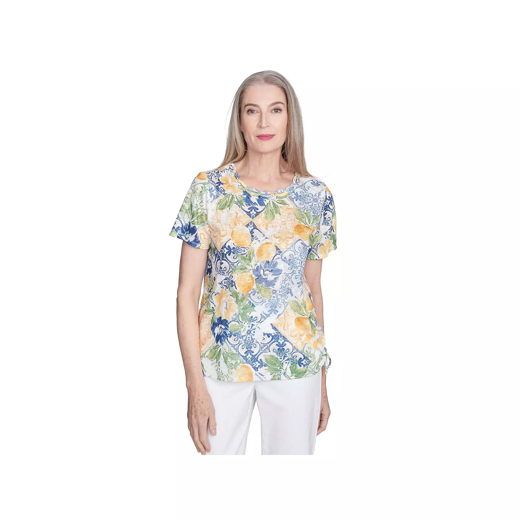 Elevate your warm weather attire with this Petite Alfred Dunner Lemon Print Crewneck Top.Click on this WOMEN'S GUIDE to find the perfect fit and more!Elevate your warm weather attire with this Petite Alfred Dunner Lemon Print Crewneck Top. Click on this WOMEN'S GUIDE to find the perfect fit and more!FEATURES Side ties No closure - pullover styling Short sleeves CrewneckFIT & SIZING 22 1/2-in. length from shoulder to hemFABRIC & CARE Polyester Machine wash and tumble dry Imported Size: XL Petite. Color: Yellow. Gender: female. Age Group: adult.