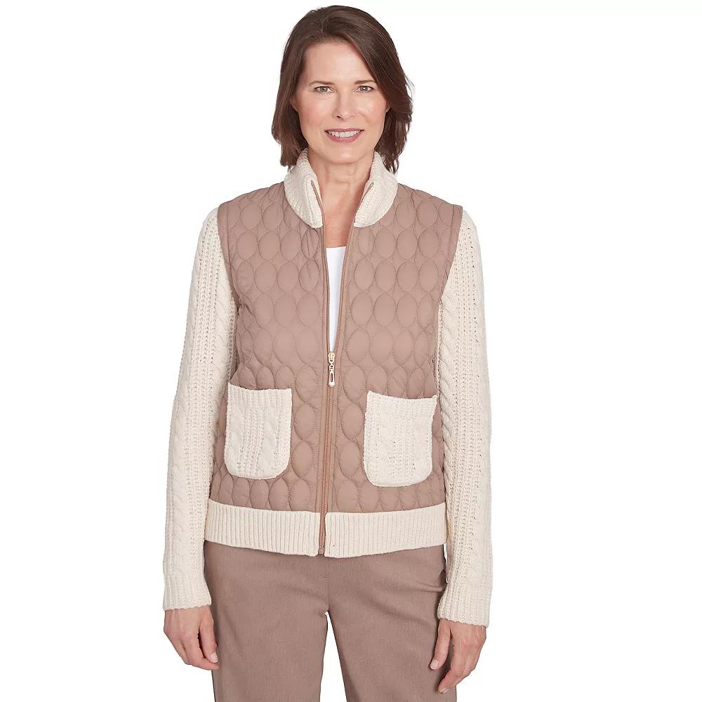 Crafted in durable fabric made to accommodate the everchanging weather of fall, this womens jacket from Alfred Dunner makes this the perfect jacket for the season!Click on this WOMENS GUIDE to find the perfect fit and more! Crafted in durable fabric made to accommodate the everchanging weather of fall, this womens jacket from Alfred Dunner makes this the perfect jacket for the season!Click on this WOMENS GUIDE to find the perfect fit and more! FEATURES Thick knit sleeves 2 front pockets Zipper front with a mock neck collar Long sleevesFIT & SIZING 24 1/2-in. length from shoulder to hemFABRIC & CARE Acrylic, nylon, wool Hand wash and line dry Imported Size: X Large. Color: Fawn. Gender: female. Age Group: adult.