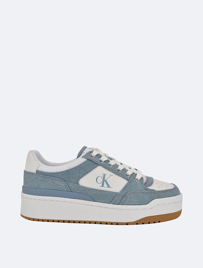 Designed with a retro-inspired silhouette, these sneakers feature a low-top, platform design with a round toe. Made with lace-up styling and topstitching details, capturing an athletic look. Finished with a CK monogram logo at the side.