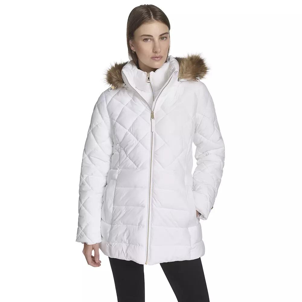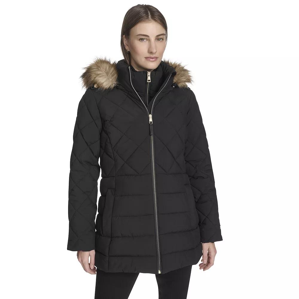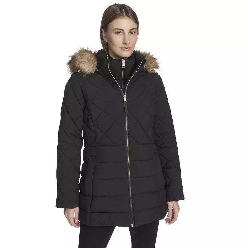 Elevate your winter wardrobe with this chic puffer coat from Andrew Marc. Its stylish design ensures you stay warm and protected against the chill, while the versatile look pairs effortlessly with both casual and polished outfits. Click on this WOMEN'S GUIDE to find the perfect fit and more! - https://www.kohls.com/feature/womens-fit-guide.jsp. FEATURES: Heavyweight warmth, Water-resistant technology. FIT & SIZE: Women's Reg, Regular fit, Designed to hit just below the waist, 29-in. length from shoulder to hem. DETAILS: Zipper front, Attached hood with removable faux-fur trim, Long sleeves, 2 Side pockets, Gold-tone hardware plating, Imported. MATERIAL & CARE: True to size, Polyester, Product contains faux fur, Dry clean. Size: X Large. Color: Black. Gender: female. Age Group: adult. Material: POLY BLEND.