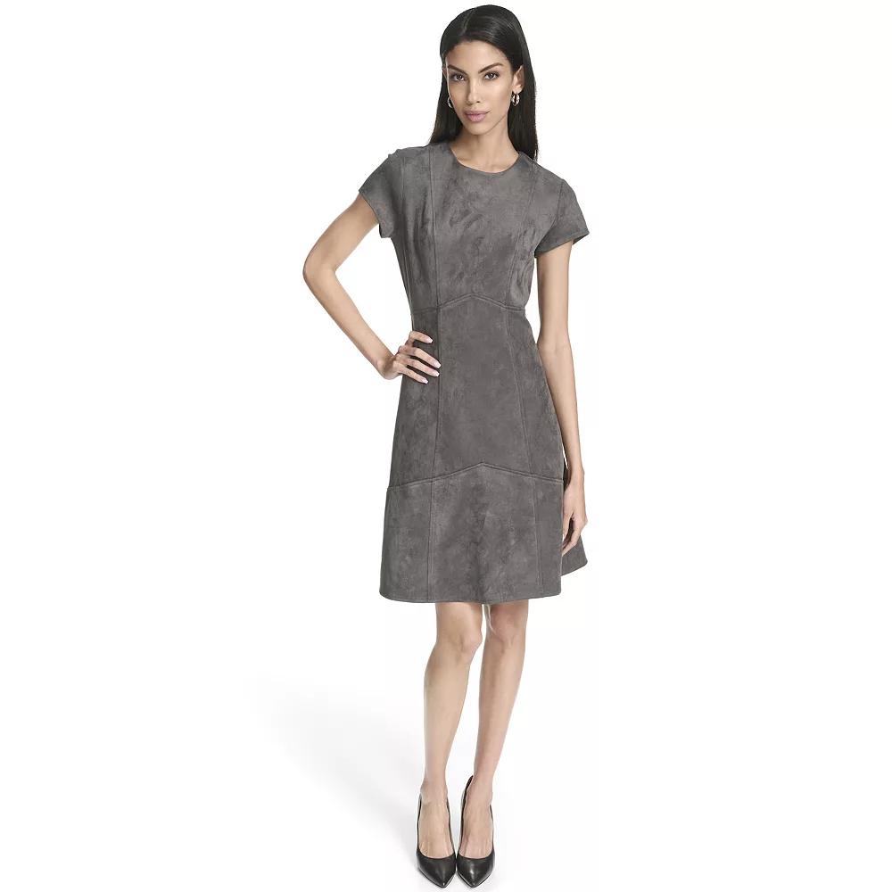 Step into elegance with this stylish short sleeve dress that perfectly blends comfort and chic. Ideal for any occasion, it's all about making you feel effortlessly fabulous while turning heads wherever you go. Click on this WOMEN'S GUIDE to find the perfect fit and more! - https://www.kohls.com/feature/womens-fit-guide.jsp. FEATURES: Soft faux suede texture, Elegant low-stretch design for comfort. FIT & SIZE: True to size, Sheath silhouette, 36 3/4-in. length from shoulder to hem, Straight hem. MATERIAL & CARE: Polyester, spandex, Unlined, Dry clean. DETAILS: Zipper closure, Crewneck, Short, set-in sleeves, Imported. Size: 2. Color: Slate. Gender: female. Age Group: adult. Material: KNIT.