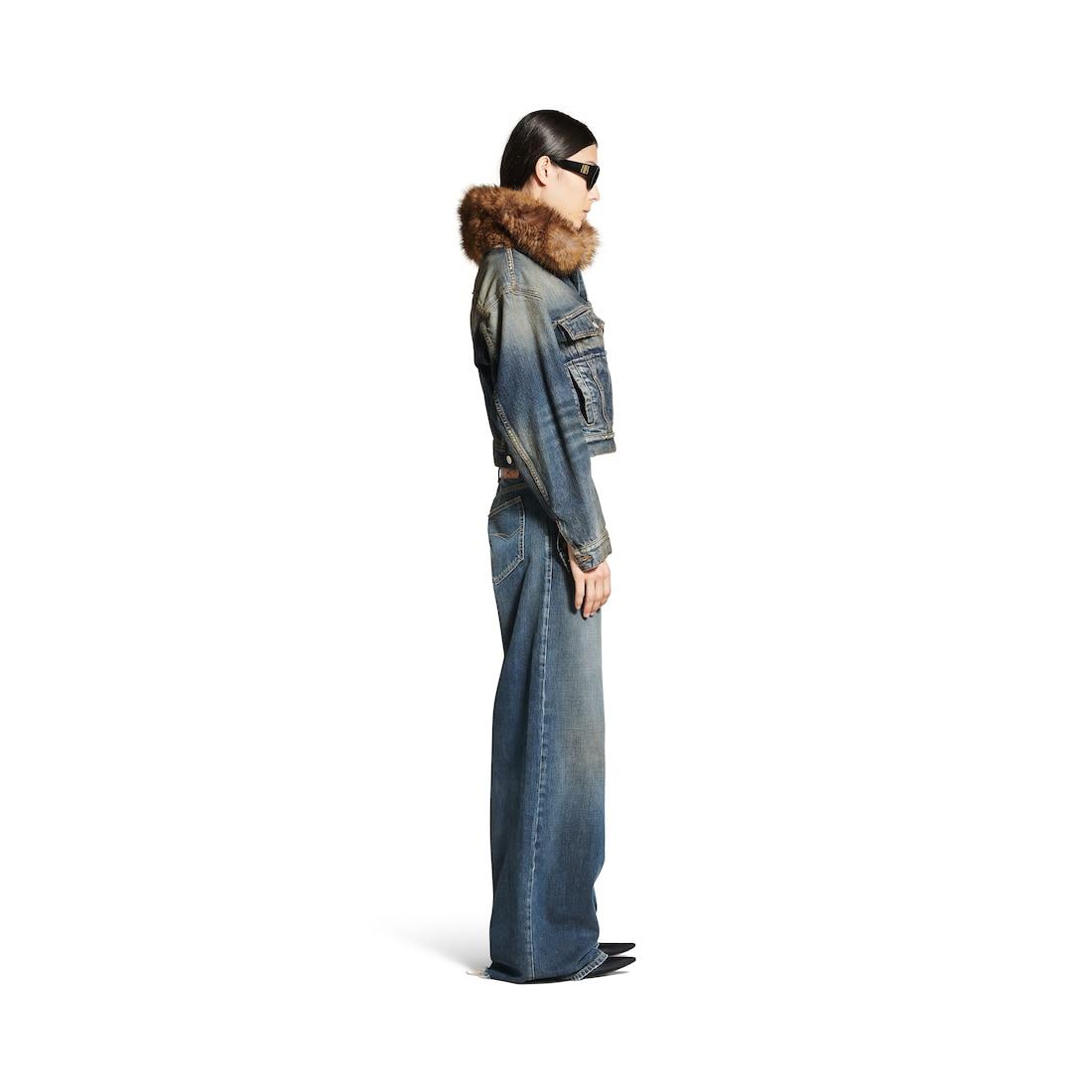 Women's Animal-free Fur Collar Denim Jacket in Dark Blue