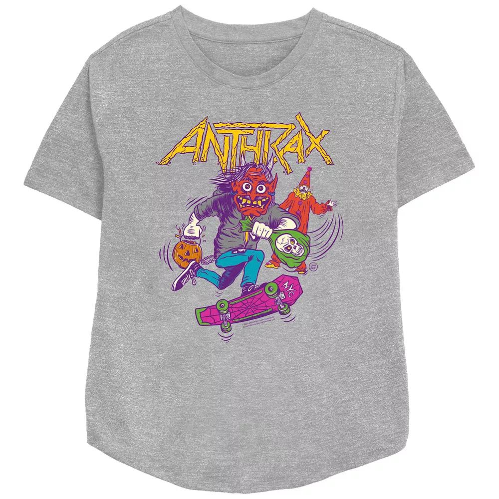 Shell love getting into the spooky spirit of the season with this Womens Anthrax Trick Or Treating Relaxed Fit Graphic Tee. FEATURES Crewneck Short sleevesFABRIC & CARE Cotton, polyester Machine wash Imported Size: X Small. Color: Athletic Heather. Gender: female. Age Group: adult.