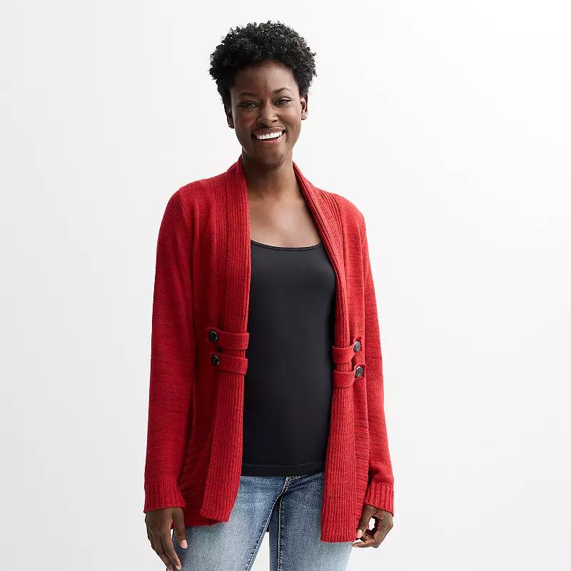Elevate your wardrobe with the cozy charm of Apt. 9® sweater cardigan. Perfect for layering over your favorite tops, this versatile piece will keep you warm and stylish whether you're heading to the office or enjoying a relaxed weekend at home. Click on this WOMEN'S GUIDE to find the perfect fit and more! - https://www.kohls.com/feature/womens-fit-guide.jsp. FIT & SIZE: Women's Reg sizing, Loose fit, 29 1/2-in. length from shoulder to hem, Straight hem. DETAILS: No closure - open front, Collared neckline, Long sleeves, Set-in sleeves, Rounded cuffs, Imported. MATERIAL & CARE: Body: polyester, acrylic, other fiber, Soft rib knit construction, Machine wash delicate. Size: X Small. Color: Jester Red. Gender: female. Age Group: adult. Material: OTHER MATERIAL.