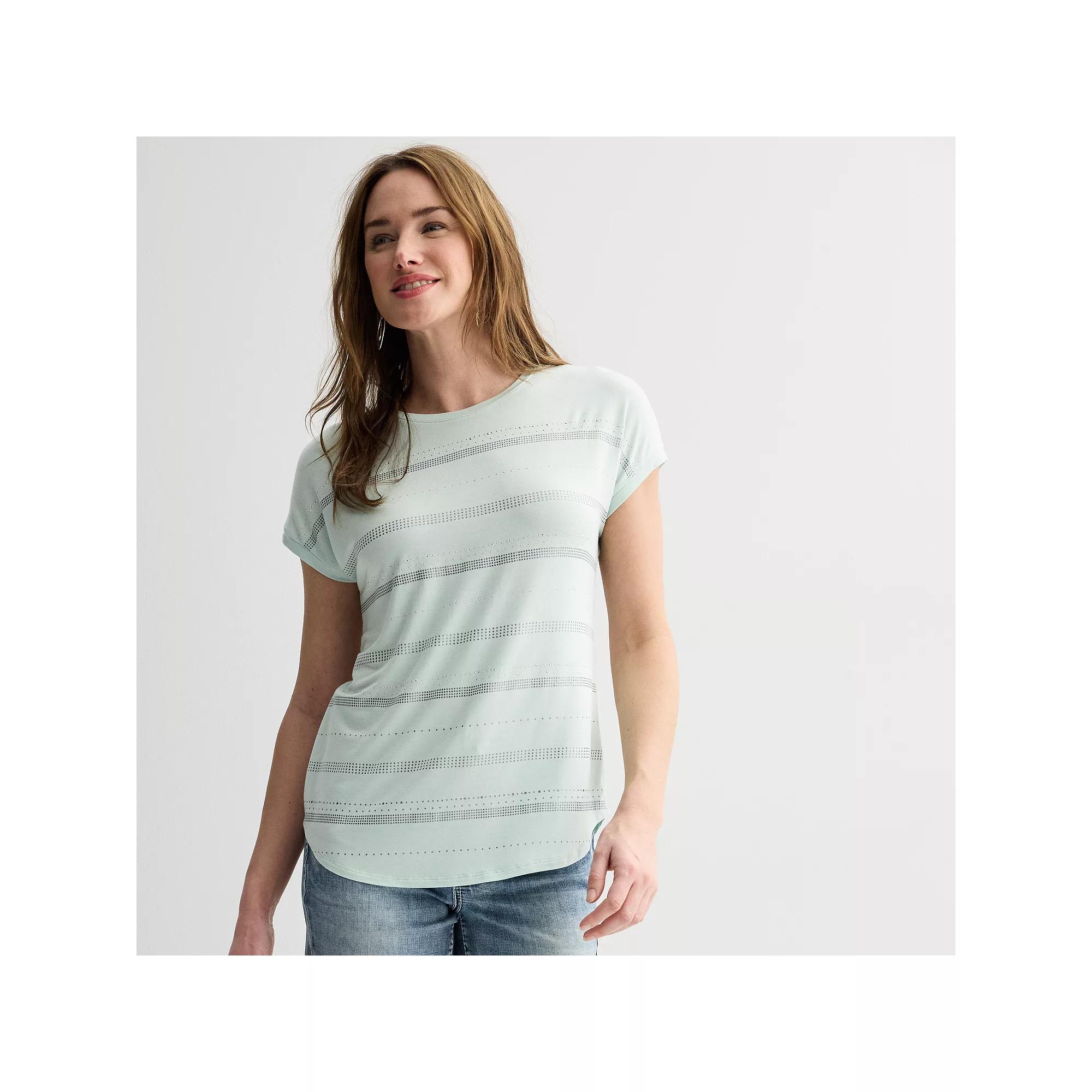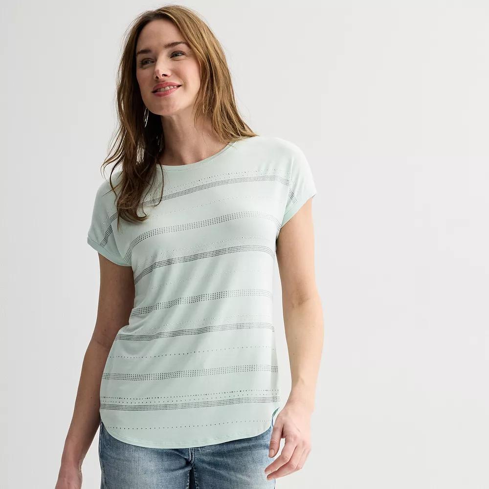 Elevate your everyday with this Women's Apt. 9® Short Sleeve Embellished Top.Click on this WOMEN'S GUIDE to find the perfect fit and more!Elevate your everyday with this Women's Apt. 9® Short Sleeve Embellished Top. Click on this WOMEN'S GUIDE to find the perfect fit and more!FEATURES Rounded hem Dolman short sleeves Unlined CrewneckFIT & SIZING 26 1/2-in. length from shoulder to hemFABRIC & CARE Rayon, spandex, polyester; rayon, spandex Machine wash Imported Size: X Large. Color: Green Frost. Gender: female. Age Group: adult.