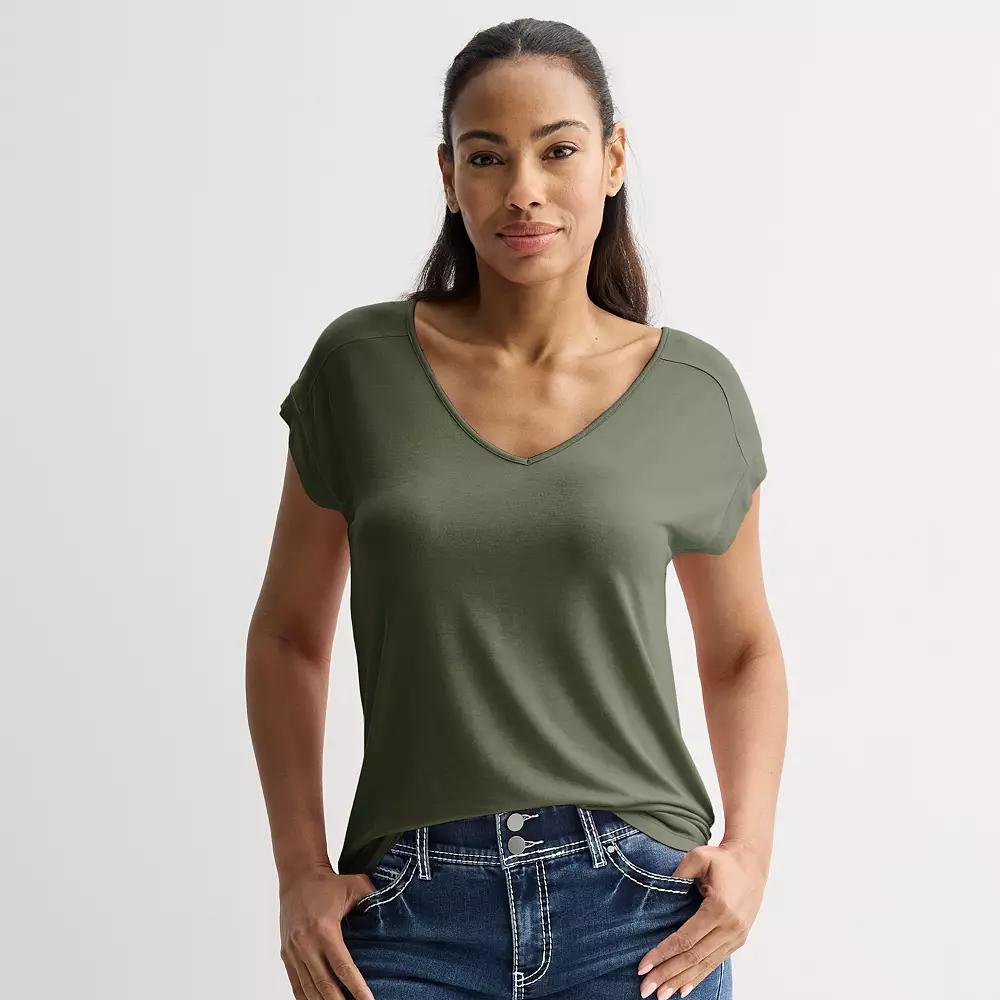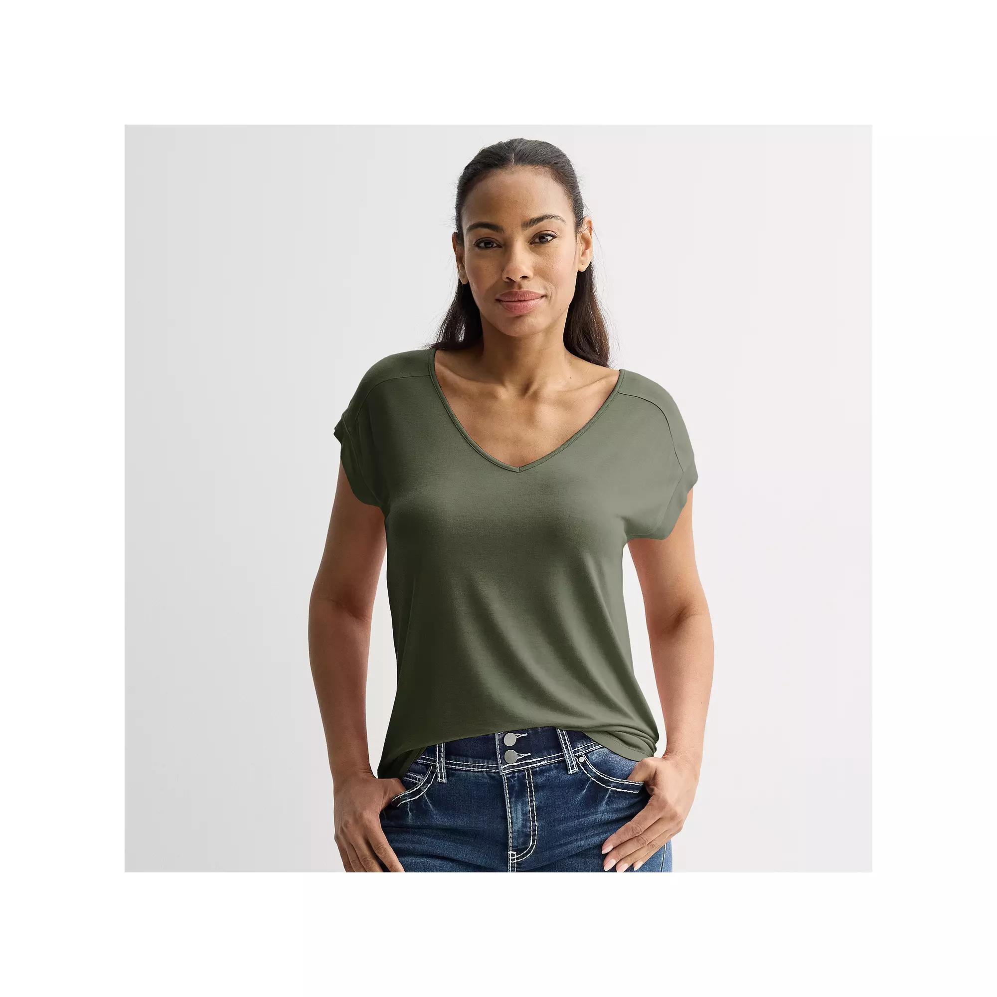 Elevate your everyday look with this Women's Apt. 9® Short Sleeve V-Neck Tunic Top.Click on this WOMEN'S GUIDE to find the perfect fit and more!Elevate your everyday look with this Women's Apt. 9® Short Sleeve V-Neck Tunic Top. Click on this WOMEN'S GUIDE to find the perfect fit and more!FEATURES Soft jersey construction No closure - pullover styling Short sleeves Unlined CrewneckFABRIC & CARE Rayon, spandex Machine wash Imported Size: X Small. Color: Carey Olive. Gender: female. Age Group: adult. Material: Cotton Blend.