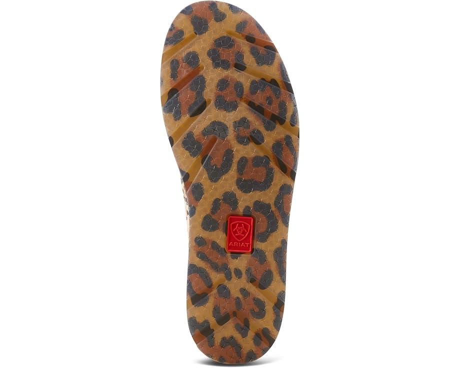 Step into style wearing the slip-on style Ariat® Cruiser Rodeo Quincy. Crafted from leather upper, this pair of fashion sneakers features moc toe design, lightweight EVA midsole that absorbs shock, side stretch elasticized panels, and cheetah print with rose and steer head design on tongue.
