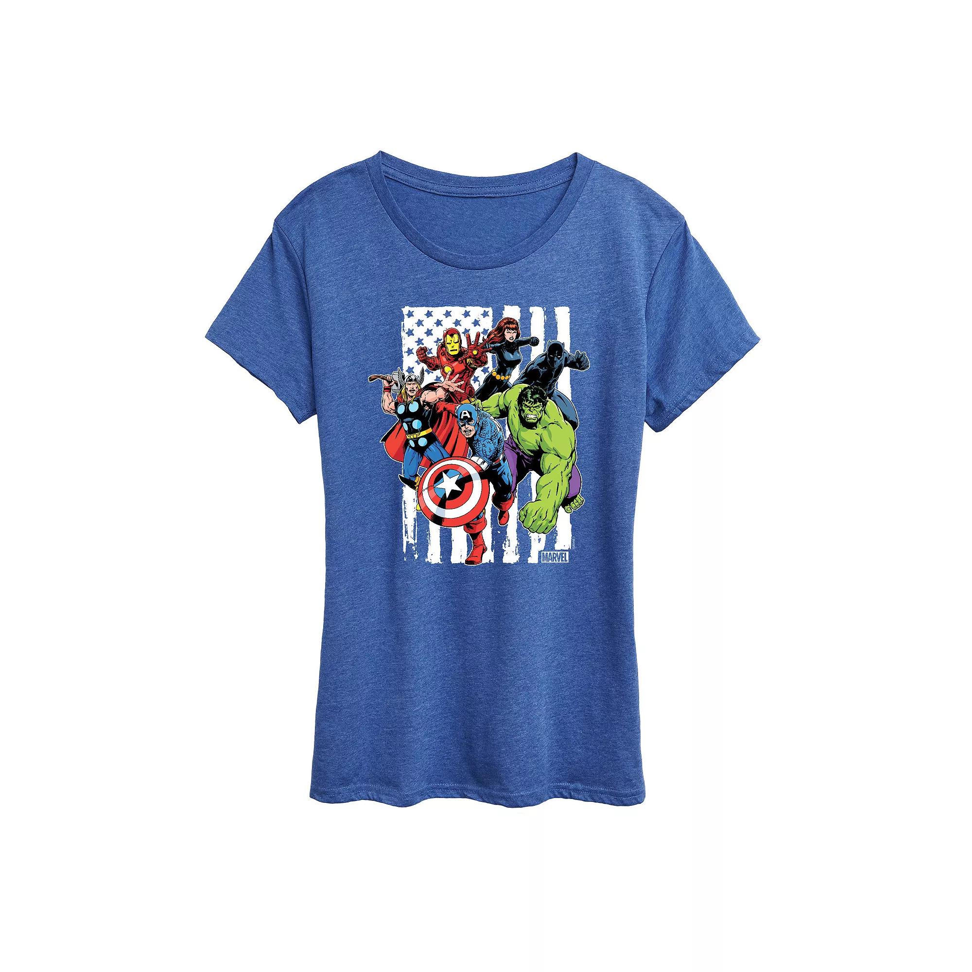 She will love showing off her style with this Women's Avengers American Flag Graphic Tee.FEATURES Short sleeves ScoopneckFABRIC & CARE Light Gray and Heather Colors: Cotton/Polyester; Solid Colors: Cotton Machine wash Imported Size: X Large. Color: Heather Royal Blue. Gender: female. Age Group: adult.