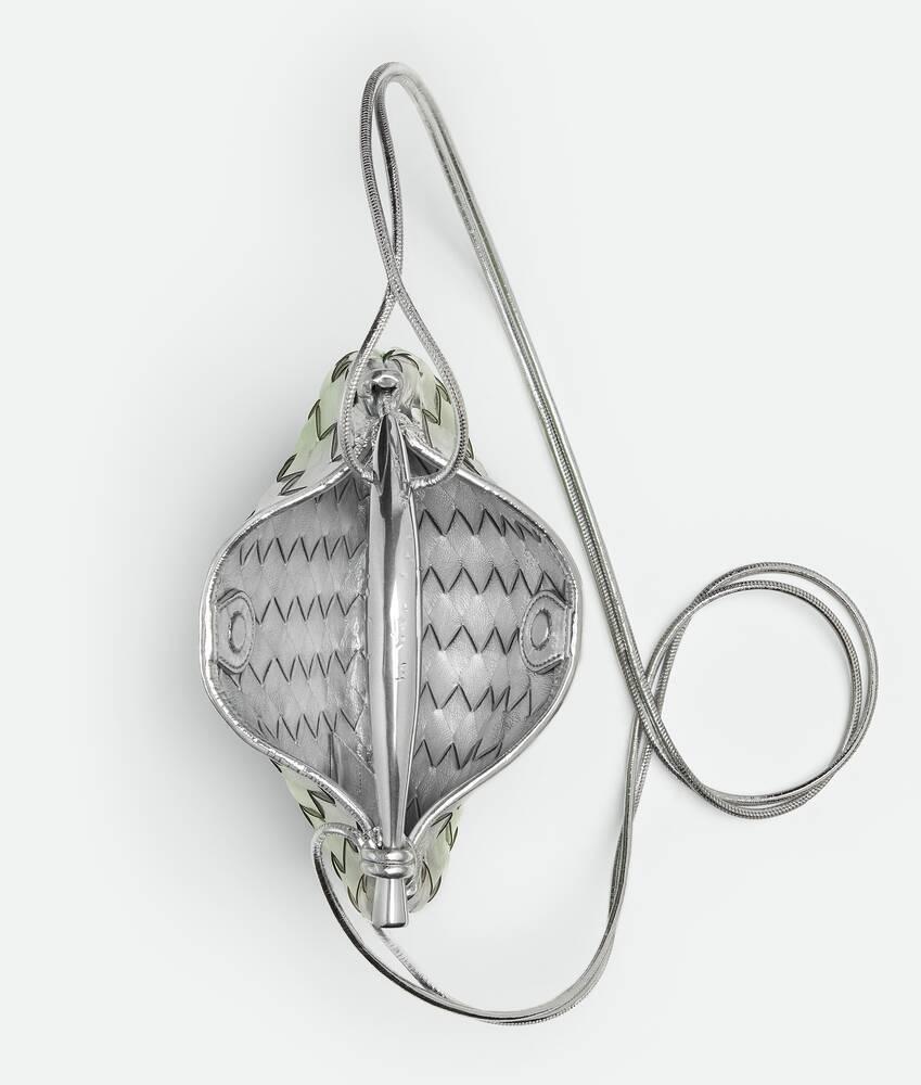 • Mini Intrecciato laminated degradé leather cross-body bag with metallic top handle• Single compartment• Magnetic closure• The metallic handle is crafted by artisans and showcases nuances and engraved markings making each piece unique