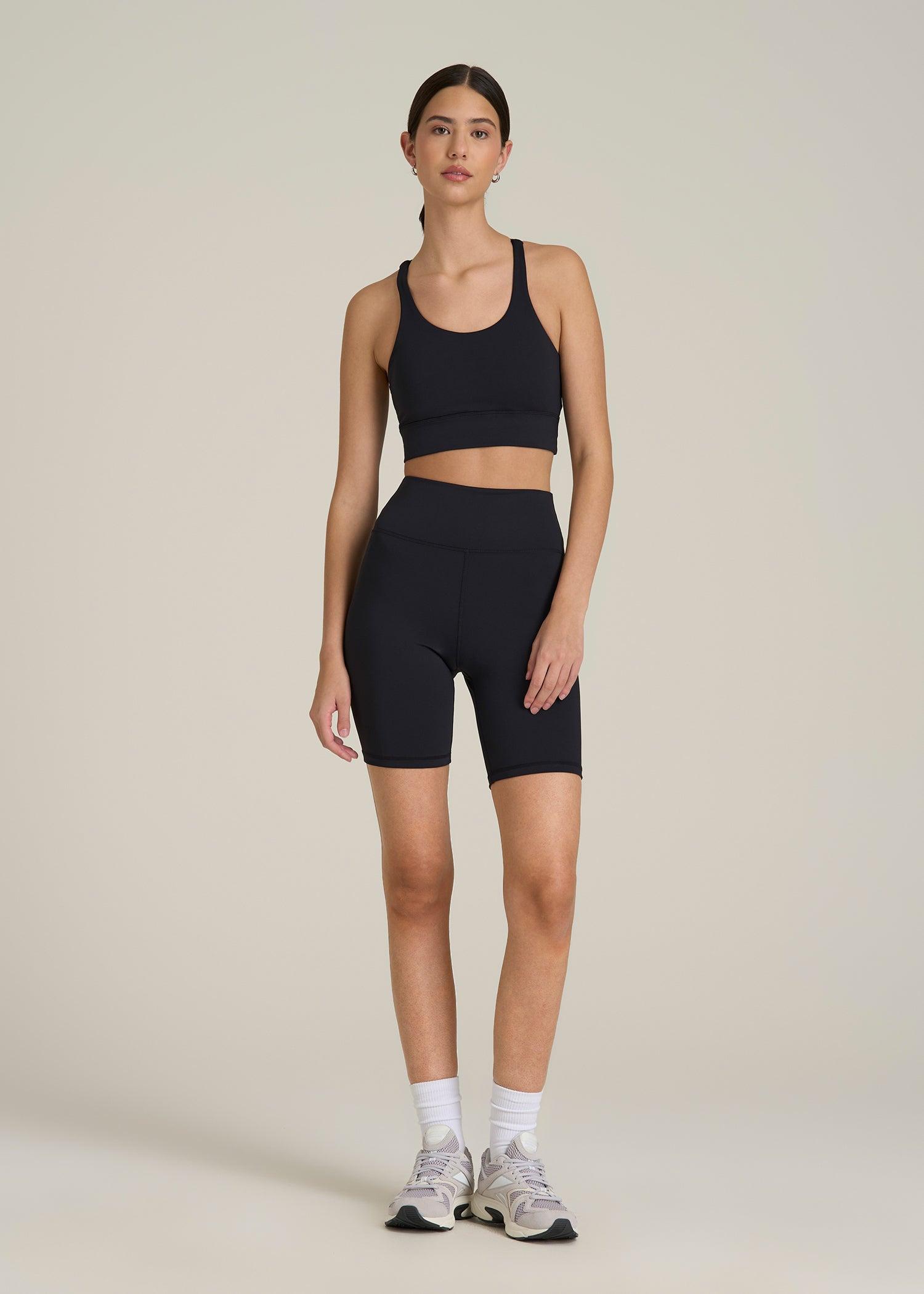 About Our Longline Sports Bra Style, support and function in a tall sports bra that's made for your frame. When it comes to activewear for tall women, you need options that are as comfortable as they are functional. They need to feel good so you can focus on your workout instead of your fit! This sports bra from our Balance collection will feel like a second skin and is as smooth as butter. It's super lightweight and has four-way stretch so nothing gets in the way of you practicing your child's pose or lifting weights at the gym. It provides medium support for low to medium-impact activities with built-in cups, and the crisscross straps on the back provide added detail. It has a longline length that will end just above the ribs and has been measured specifically for your tall girl silhouette. Plus, it's been pre-washed and shrinkage controlled for ease of care! Wear it with our matching Balance High-Rise Leggings or your favorite workout outfit. SIZE & FIT: Longline sports bra Criss-cross straps in the back Moderate support with built-in cups Scoop neck Model is 5'10", wearing size XS Tall FABRIC & CARE: 79% polyester, 21% spandex Pre-washed and shrinkage controlled Machine wash cold with like colors Tumble dry low Do not bleach
