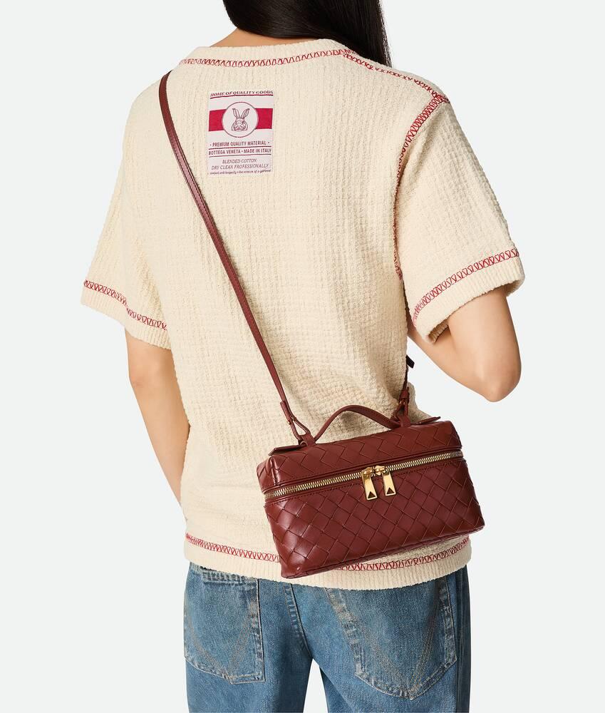 • Intrecciato leather vanity case with detachable strap• One main compartment, one flat pocket• Zippered closure