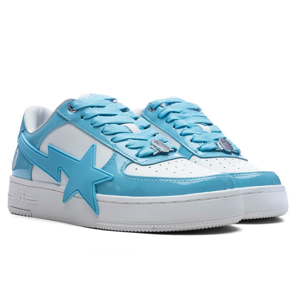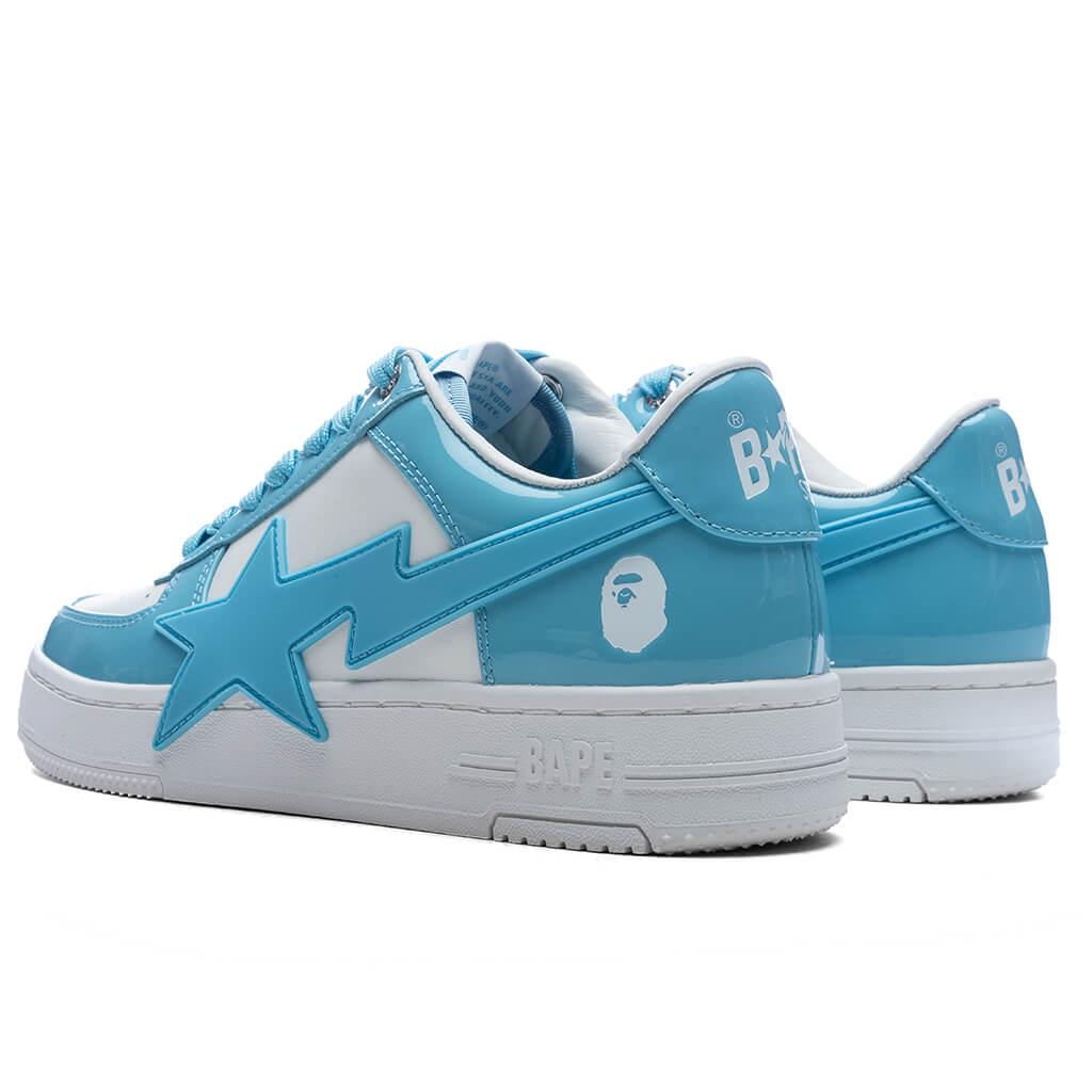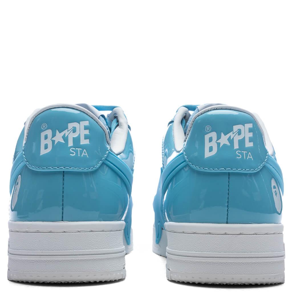 The Women's Bape STA OS #3 in Sax reimagines a classic silhouette with bold details. Featuring a leather upper with patent leather overlays, the design showcases an exaggerated STA logo for a standout look. A perforated toe box adds breathability, while the branded dubraé and embroidered heel provide signature finishing touches. Leather upper Patent leather overlays Exaggerated STA Perforated toe box Branded dubraé Embroidered heal Style No: 001FWK702310L-SAX